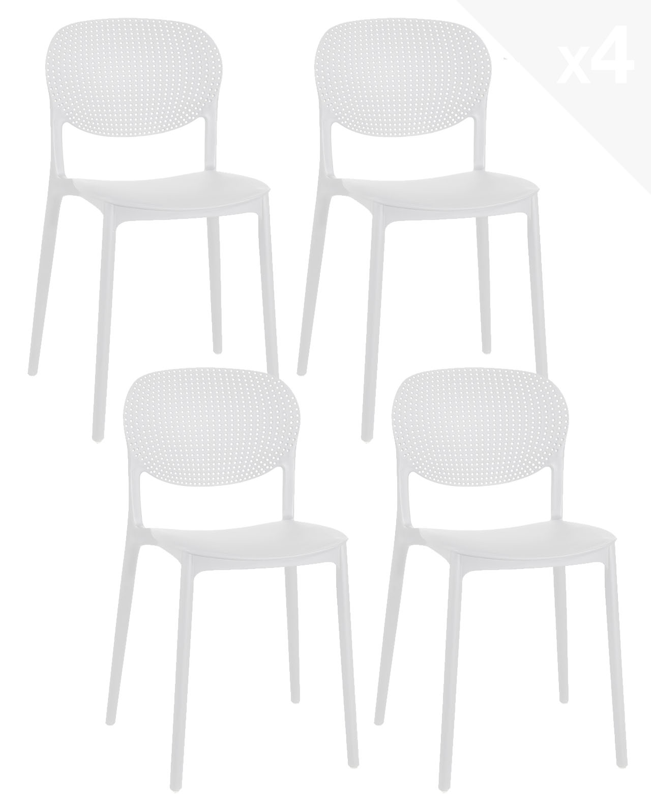 Lot 4 chaises de cuisine empilables plastique souple ABY (blanc)