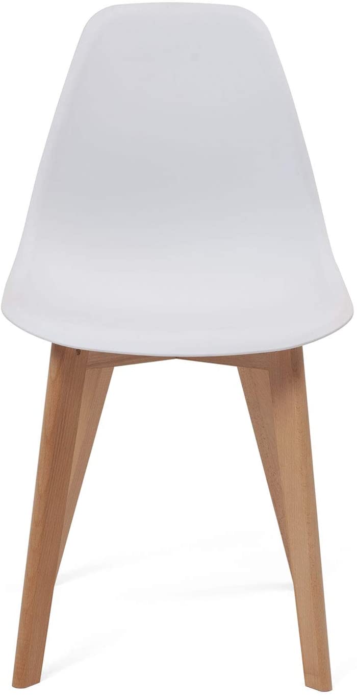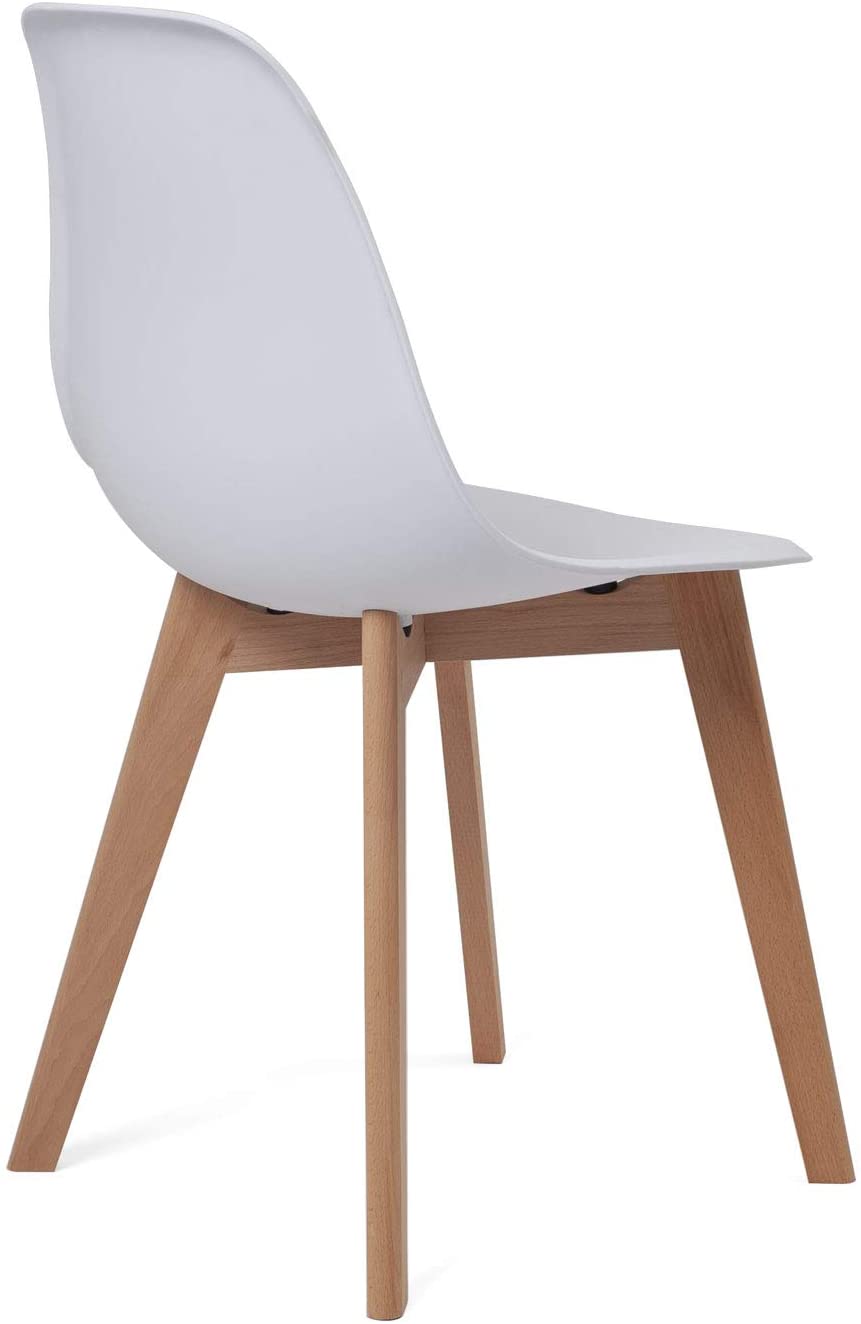 Libellé Lot 4 chaises de cuisine scandinaves siège plastique souple pieds bois hêtre clair NAO (blanc)