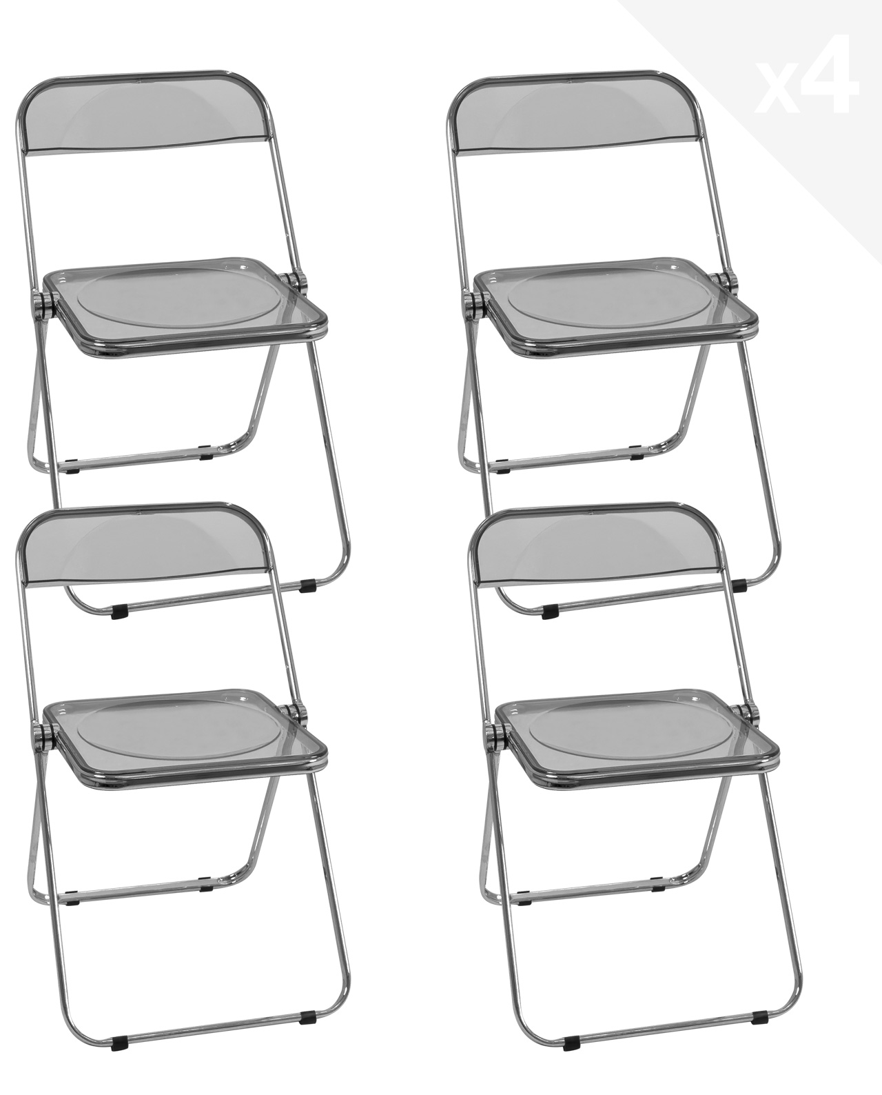 | Libellé | Lot 4 chaises pliantes transparentes chrome rétro vintage RAMA (Gris fumé) |