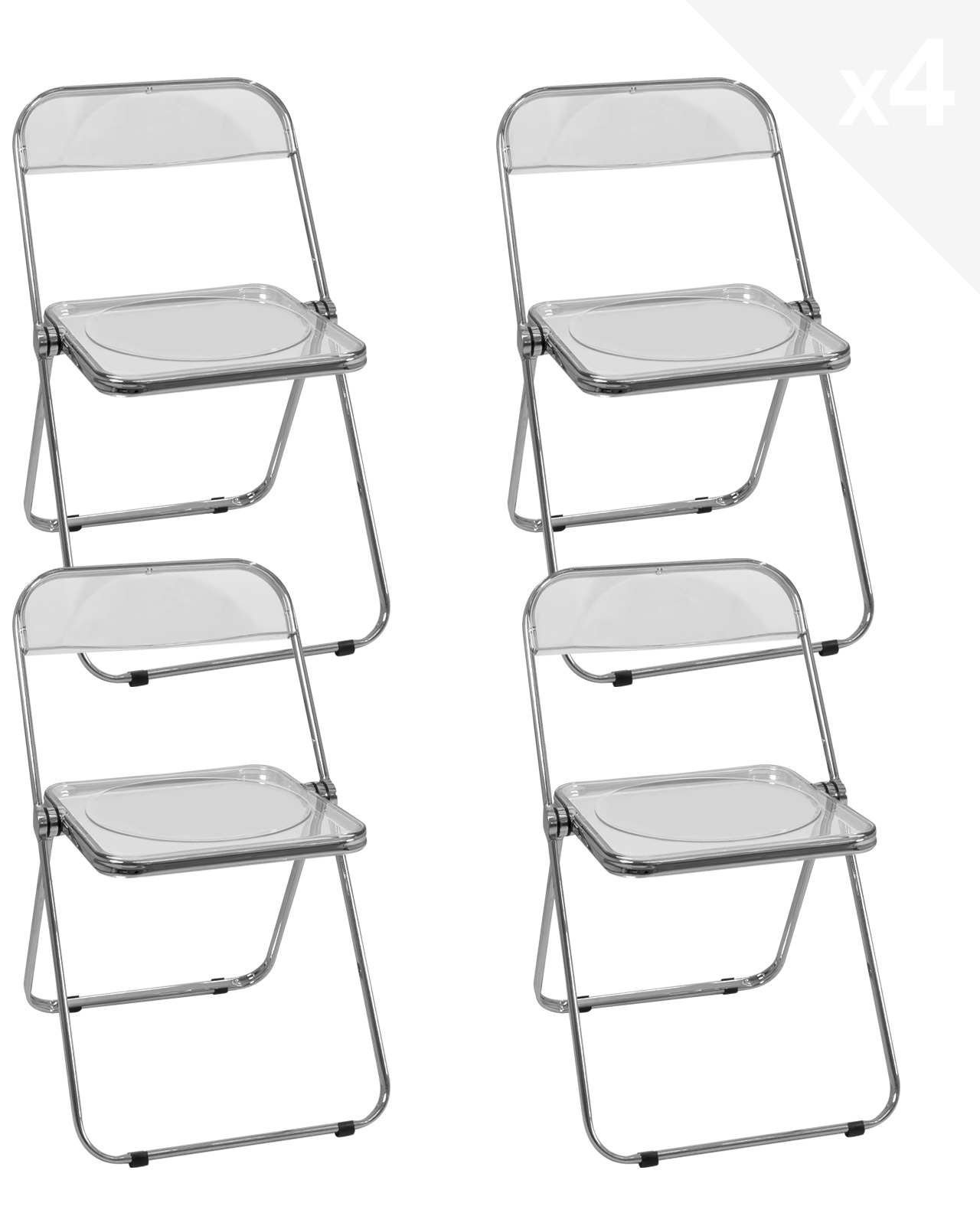 | Plus produit | Lot de 4 chaises transparent et chrome pliables au design rétro, légères robustes et peu encombrantes |