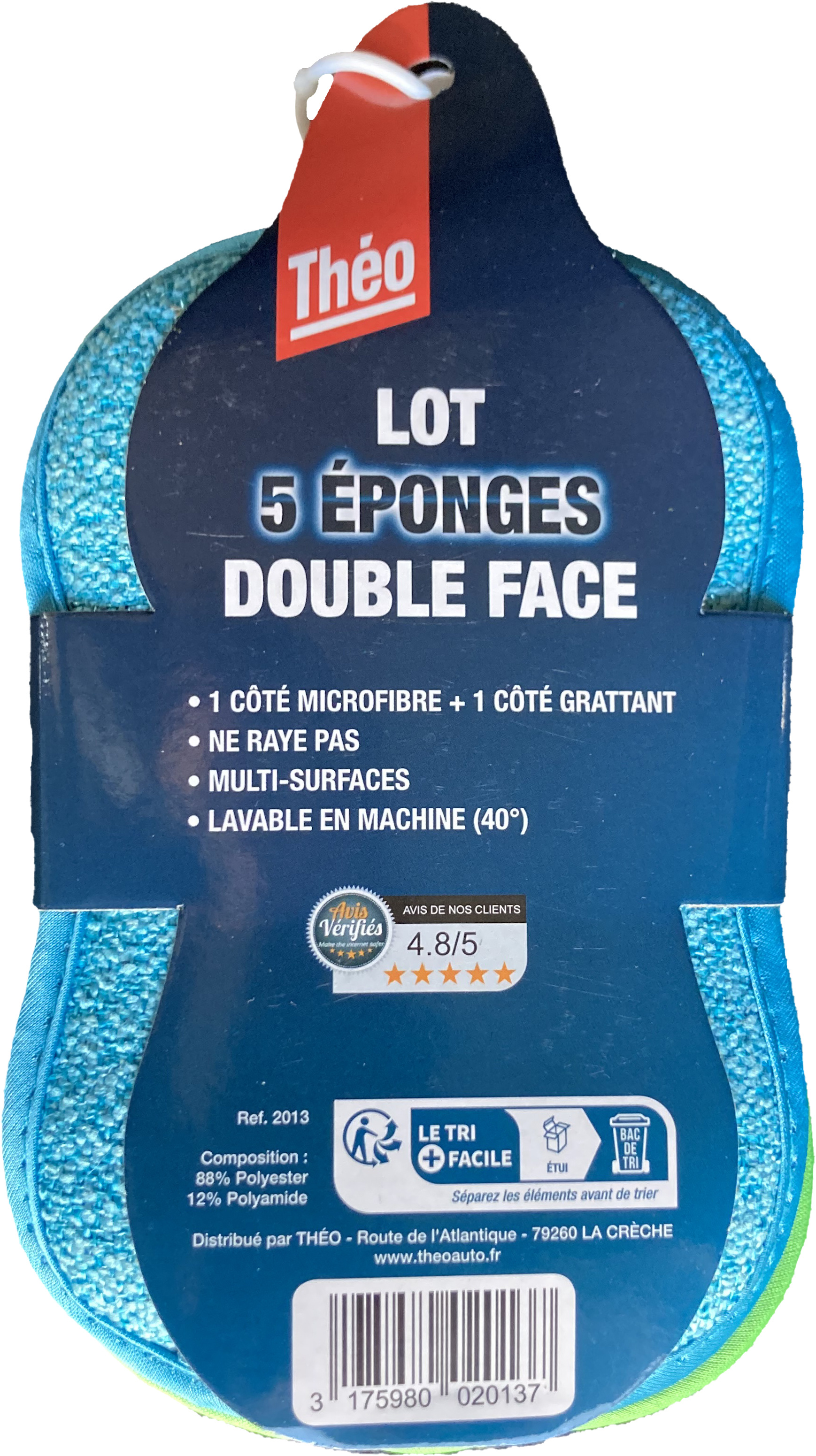 1 coté microfibre + 1 côté grattant ne raye pas multi-surfaces lavable en machine.