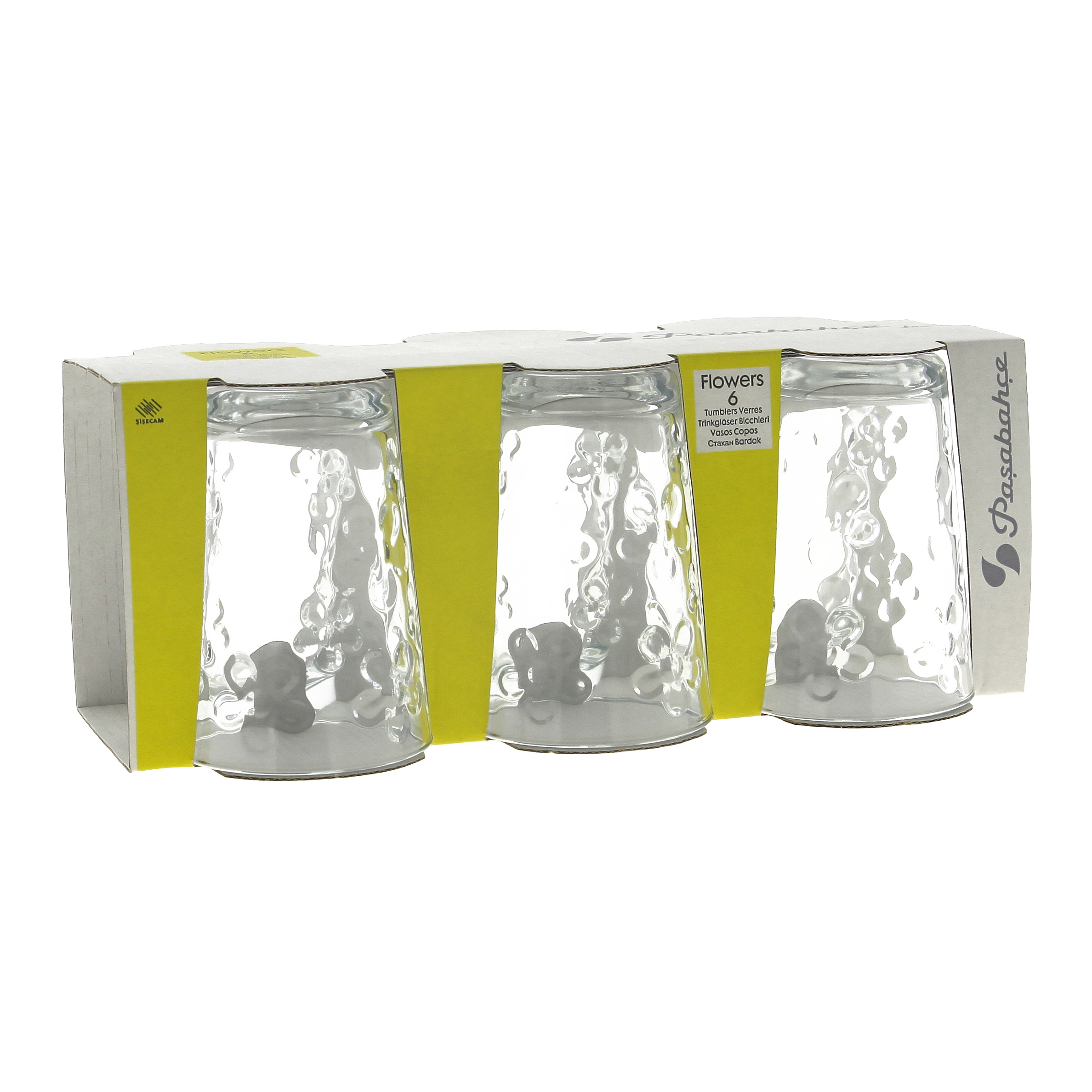 | Libellé | Lot 6 Gobelets 20 cl Flower en verre transparent |