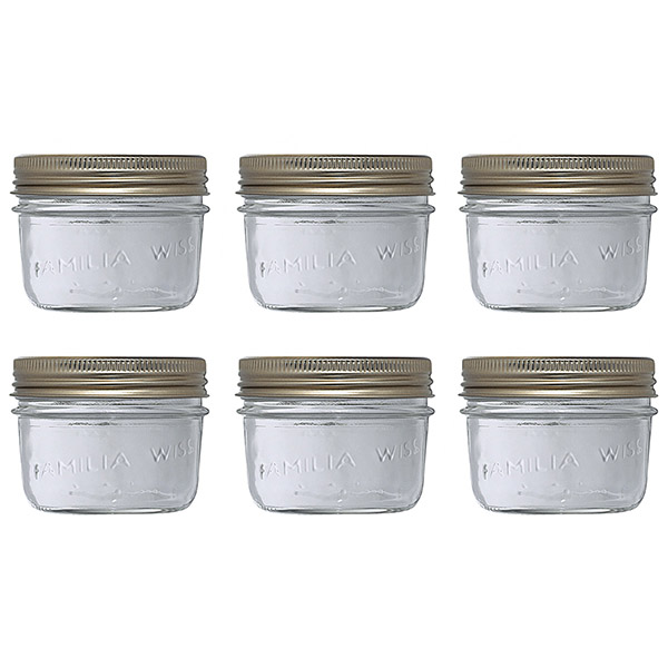 Lot de 6 terrines Le Parfait "FAMILIA WISS" 200ml. Ce bocal s'utilise avec une capsule et un couvercle métallique "FAMILIA WISS".