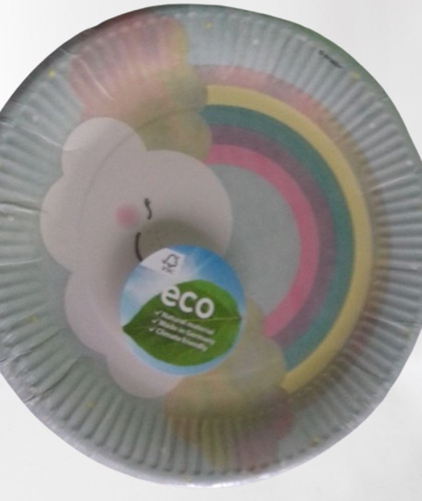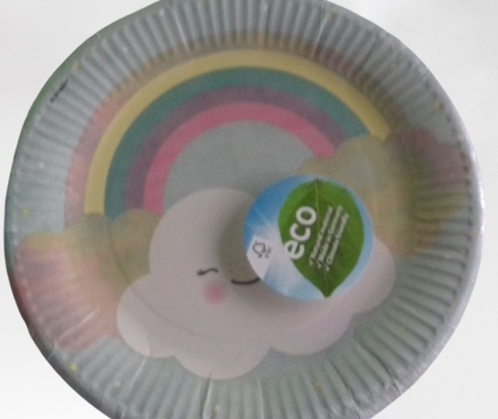 | Libellé | Lot 8 Assiettes jetables rondes en papier 23cm - Arc-en-ciel et nuage |