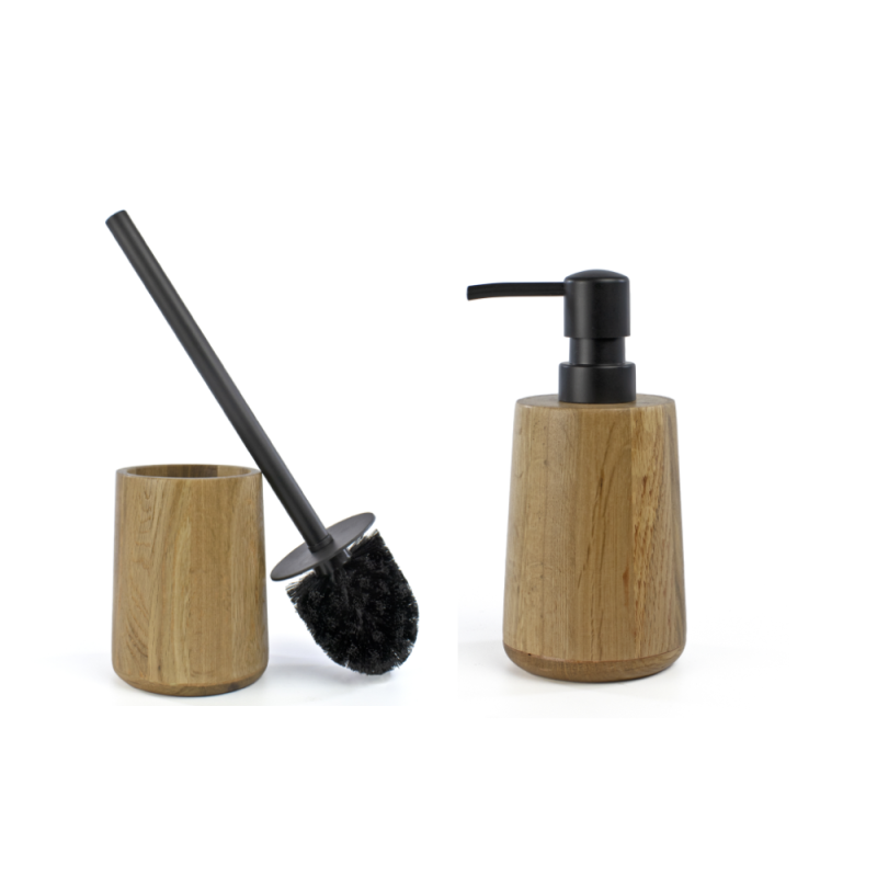 Lot d'accessoires WC DEBLANCH OAK brosse wc bois + distributeur bois