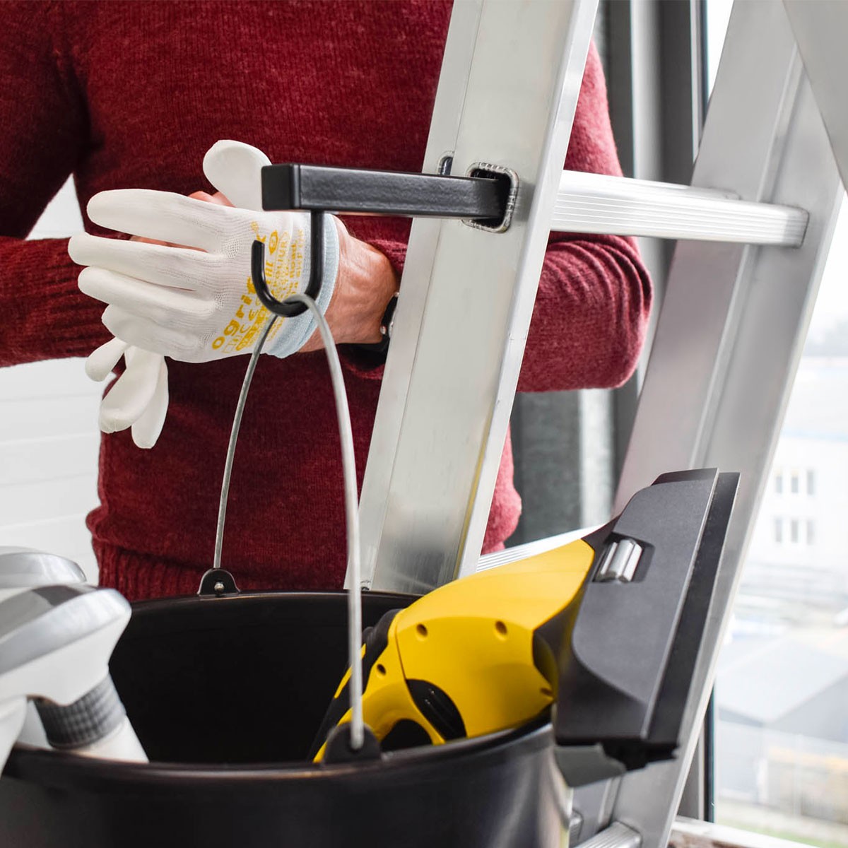 | Plus produit | Ce crochet d'échelle est idéal pour travailler sereinement en hauteur. Vous disposez de vos outils à portée de main. |