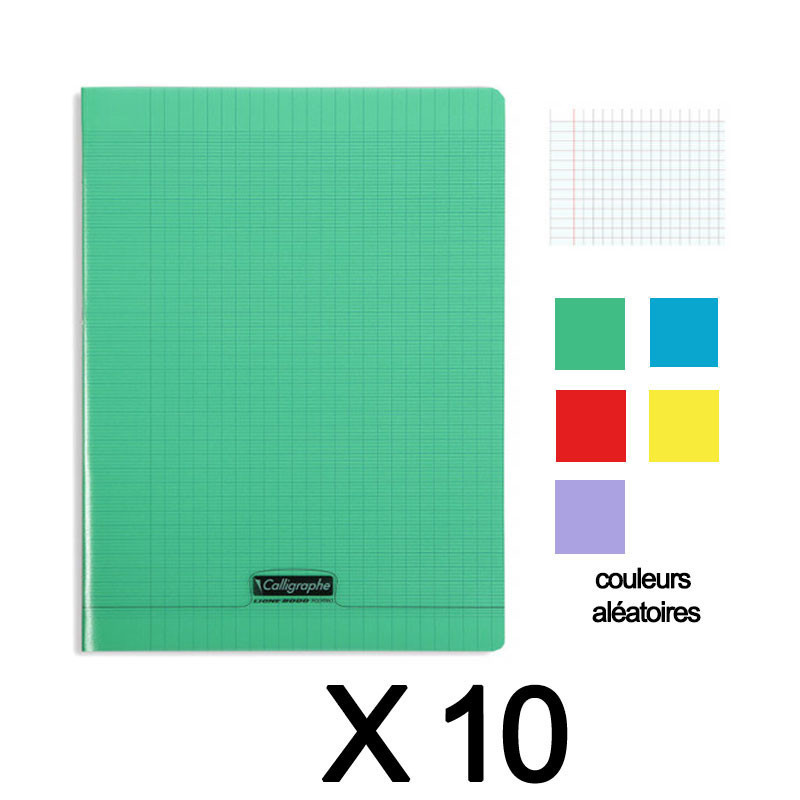 Lot de 10 cahiers polypro - couverture en plastique - 24x32 cm - 48 pages - Grands carreaux Séyès - Assortiment - Calligraphe.