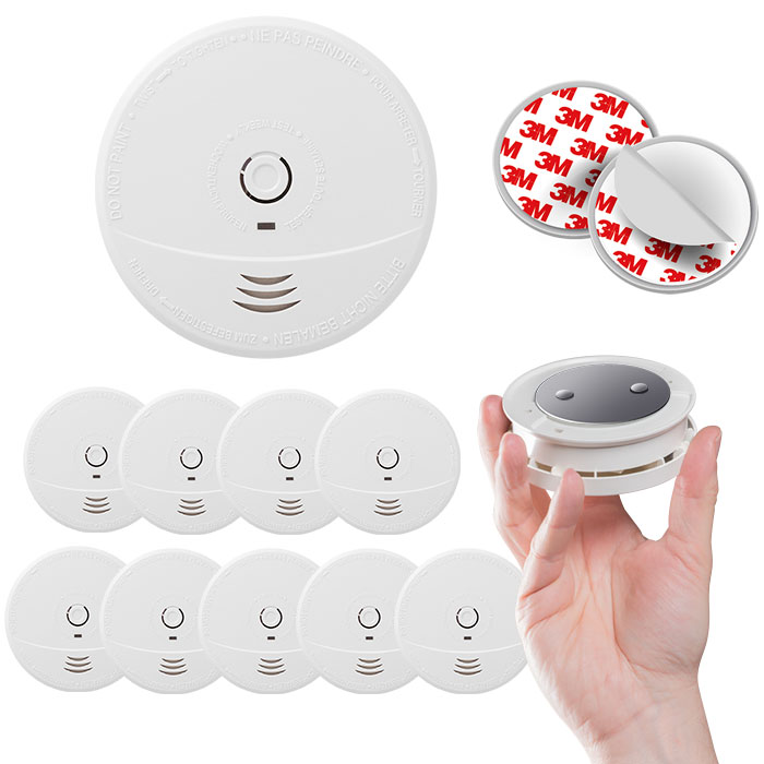 10 détecteurs de fumée (livré avec pile), munis d'un capteur optique, destinés à être installés dans des immeubles d'habitation, des appartements et des pièces à usage résidentiel. Les détecteurs de fumée et d'incendie, sont conçus pour avertir rapidement de la présence de fumée et d'incendie, afin de pouvoir réagir de manière adéquate face à cet évènement dangereux. Veuillez toujours consulter les réglementations en vigueur en matière d'avertisseur de fumée.