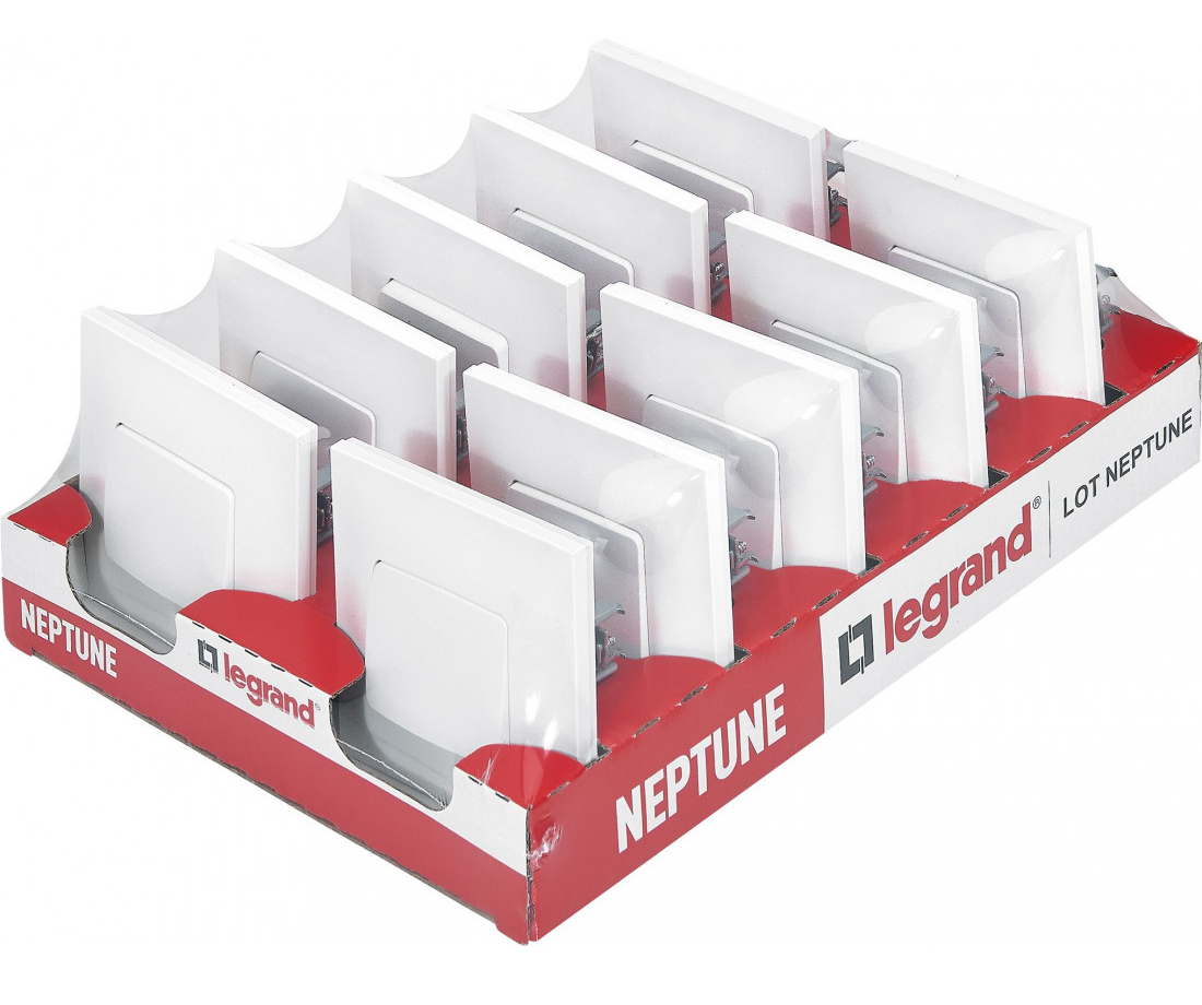 | Libellé | Lot de 10 interrupteurs va et vient 10A complet Neptune - blanc - Legrand |