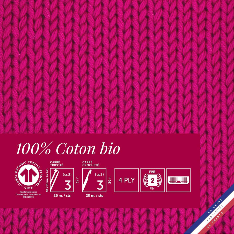 | Libellé | Lot de 10 pelotes de laine - Azalée - 100% coton bio - 3mm - Tricot et crochet - Bergère de France |