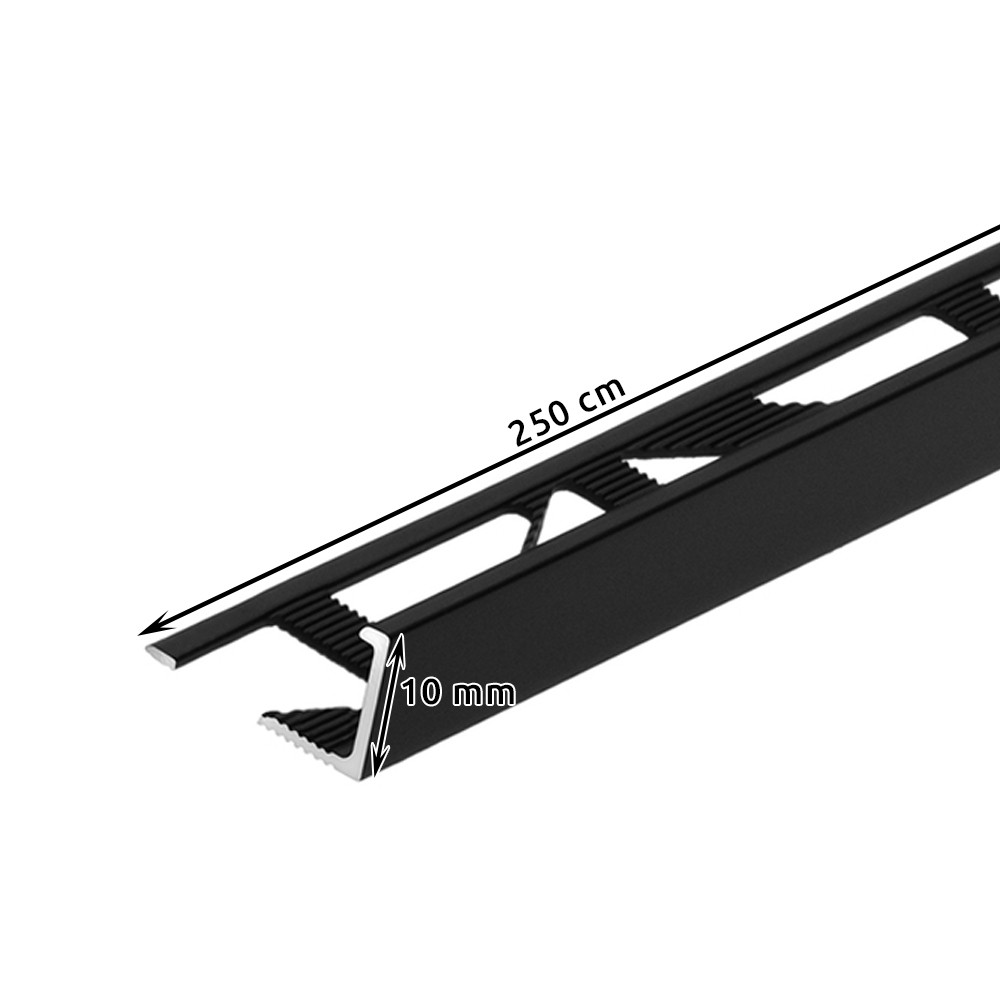 Lot de 10 Profilé de finition en aluminium pour carrelage angle droit 10 mm longueur 2,5 m Noir (RAL 9005