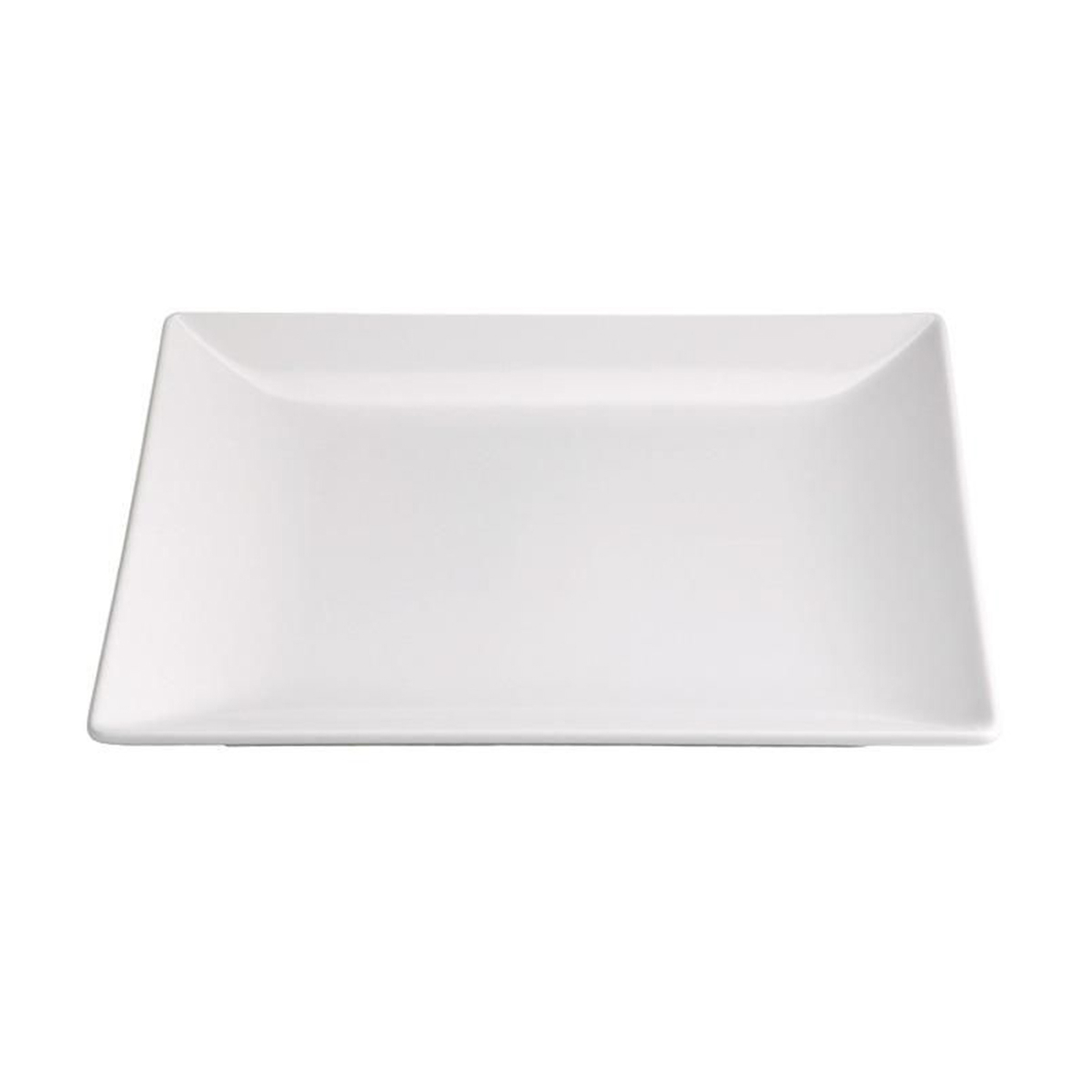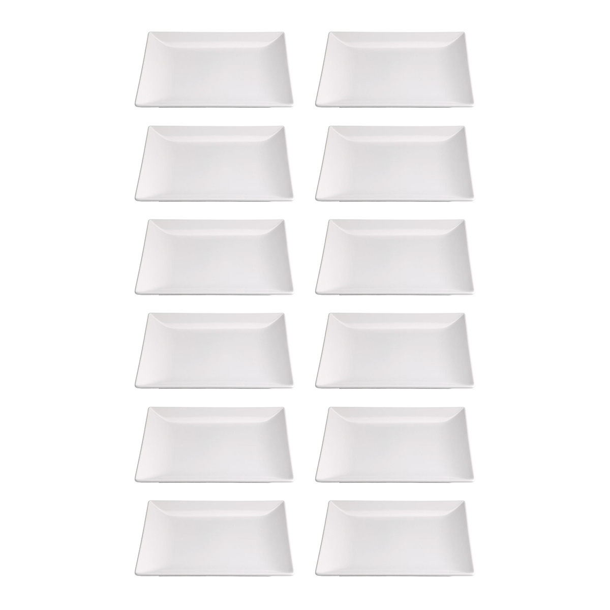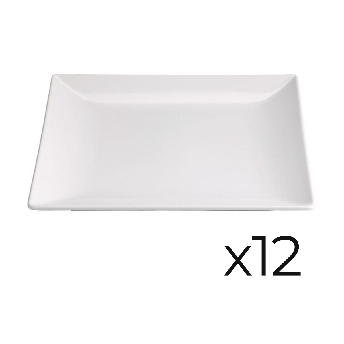 Lot de 12 assiettes carrés LAURA , assiette service de table en porcelaine blanche - Longueur 21 x largeu
