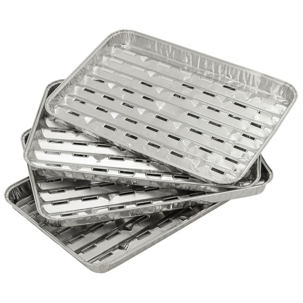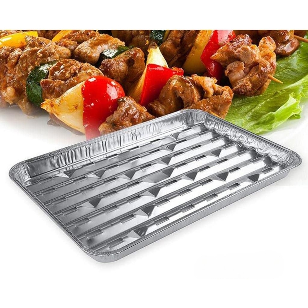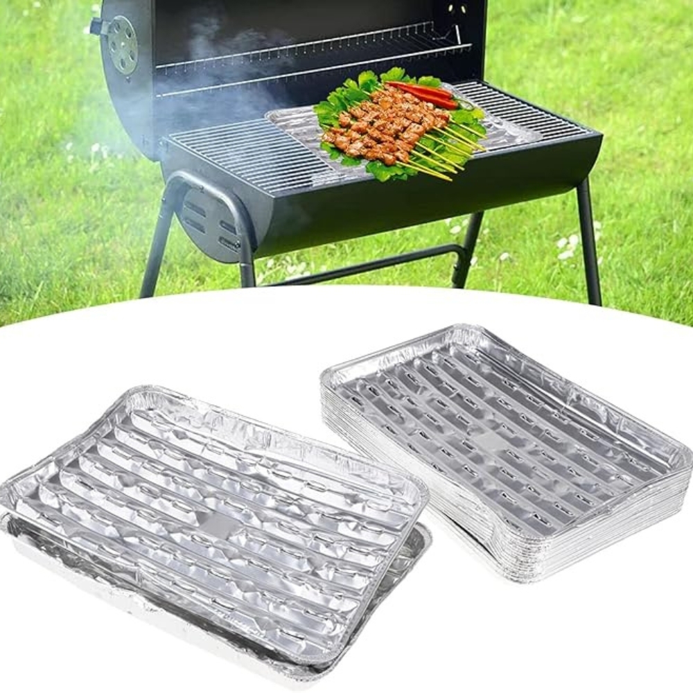 Barquettes aluminium grand format pour une cuisson rapide et maîtrisée, idéales pour vos barbecues d’été. Préparez vos grillades comme un chef avec ce lot de 12 barquettes jetables en aluminium de grande taille (35 x 22 cm), spécialement conçues pour les barbecues et les cuissons au four. Grâce à leur fond perforé, elles assurent une cuisson rapide, homogène et plus saine, en laissant la chaleur circuler librement et les graisses s’écouler. Fabriquées en aluminium alimentaire épais et résistant, ces barquettes supportent des températures élevées sans se plier ni fuir. Fini les corvées de nettoyage après le repas : elles sont jetables! Que vous cuisiniez de la viande, du poisson, des légumes ou des plats préparés, elles vous garantissent une cuisson maîtrisée, sans contact direct avec les flammes, tout en préservant la saveur des aliments. -Lot de 12 barquettes en aluminium grand format – idéales pour les grandes tablées: Profitez d’un lot complet de 12 barquettes jetables en aluminium de format généreux 35 x 22 cm, spécialement conçues pour les cuissons de groupe. Que ce soit pour un barbecue entre amis, un buffet, un pique-nique ou une réception, ces barquettes offrent un excellent rapport quantité/praticité, prêtes à l’emploi pour tous vos événements culinaires en extérieur ou en intérieur. -Aluminium épais et durable – Résiste à la chaleur et à la manipulation: Ces barquettes sont fabriquées dans un aluminium de qualité supérieure, rigide et épais, leur conférant une excellente tenue à la chaleur. Contrairement aux modèles fins, elles ne se plient pas et ne fuient pas, même lorsqu’elles contiennent des aliments lourds ou des préparations en sauce. Adaptées pour une utilisation directe sur grilles, fours et planchas, elles sont conçues pour assurer sécurité et confort d’utilisation. -Fond perforé pour une cuisson maîtrisée – Circulation d’air optimale: Le fond perforé innovant permet une circulation homogène de la chaleur et une meilleure évacuation des graisses. Cela garantit une cuisson plus rapide, plus saine et plus croustillante, évitant l’effet vapeur souvent rencontré avec des contenants pleins. Parfait pour des viandes saisies à point, des légumes grillés ou du poisson tendre et savoureux. -Jetables – Moins de corvée: Gagnez du temps après vos repas : ces barquettes sont à usage unique pour une facilité maximale en vous épargnant la vaisselle. Une solution hybride entre praticité, parfaitement adaptée à une utilisation occasionnelle. -Usage polyvalent : barbecue, four, stockage et transport de plats: Ces barquettes ne se limitent pas aux barbecues. Elles conviennent aussi pour la cuisson au four, le stockage des plats au réfrigérateur, ou encore le transport sécurisé de vos recettes maison lors d’un déplacement ou d’un événement. Leur format profond est idéal pour les grandes pièces de viande, gratins, poissons entiers, brochettes ou légumes marinés. CARACTÉRISTIQUES: Lot de 12 grandes barquettes en aluminium (35x22 cm) avec fond perforé, idéales pour une cuisson uniforme et rapide au barbecue ou au four. Pratiques et jetables , elles facilitent la préparation et le service de vos grillades estivales. -Type de produit : Barquettes jetables en aluminium pour cuisson -Quantité : Lot de 12 barquettes -Dimensions : 35 cm x 22 cm -Compatibilité : Barbecue à charbon, gaz ou électrique Four traditionnel Grille de cuisson / plancha -Jetables : Oui, usage unique