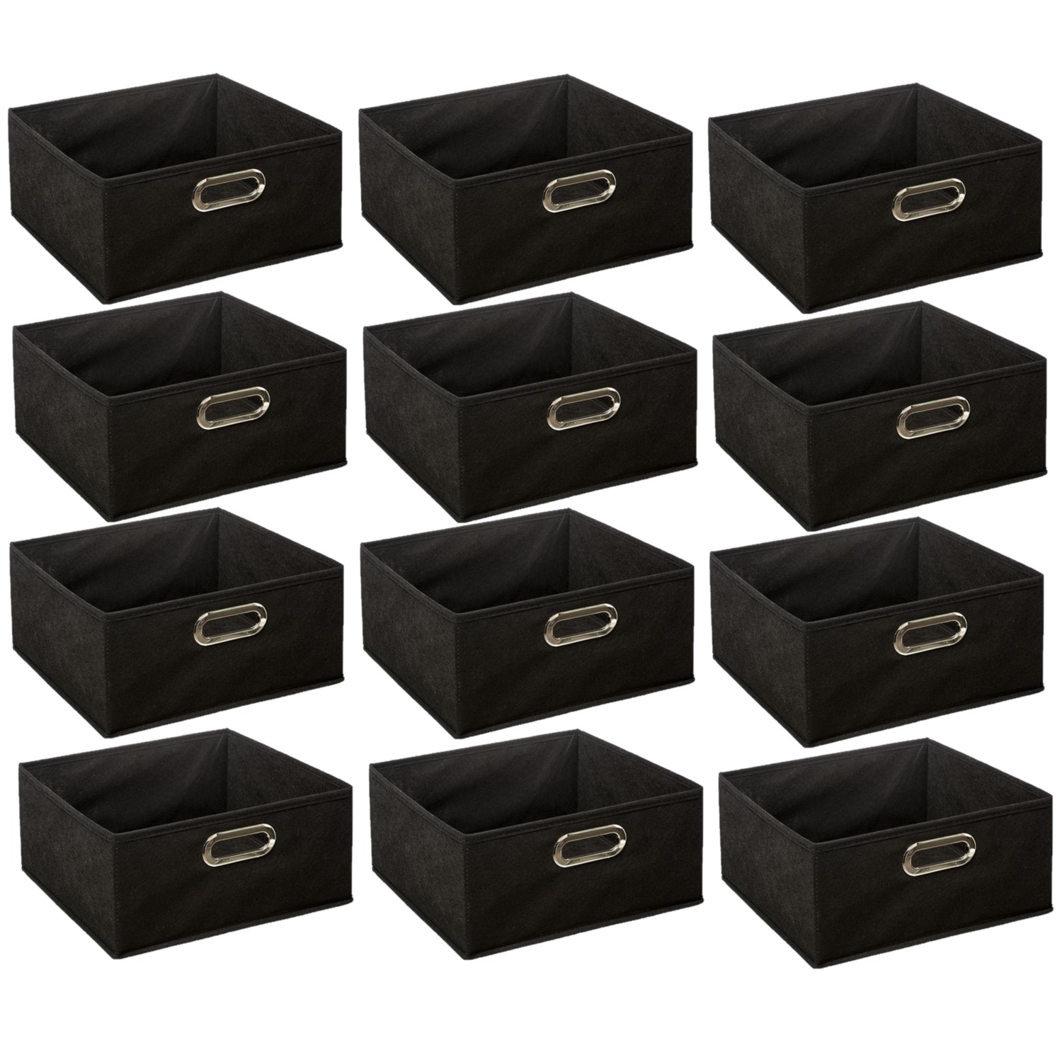 Notre Lot de 12 boîtes de rangement carré, en tissu, sont pliables. Idéales pour des rangements discrets, ces boites sont compatibles avec les meubles Mix'n Modul.