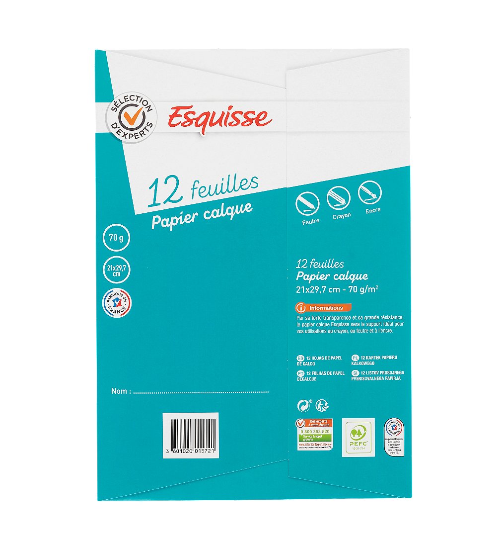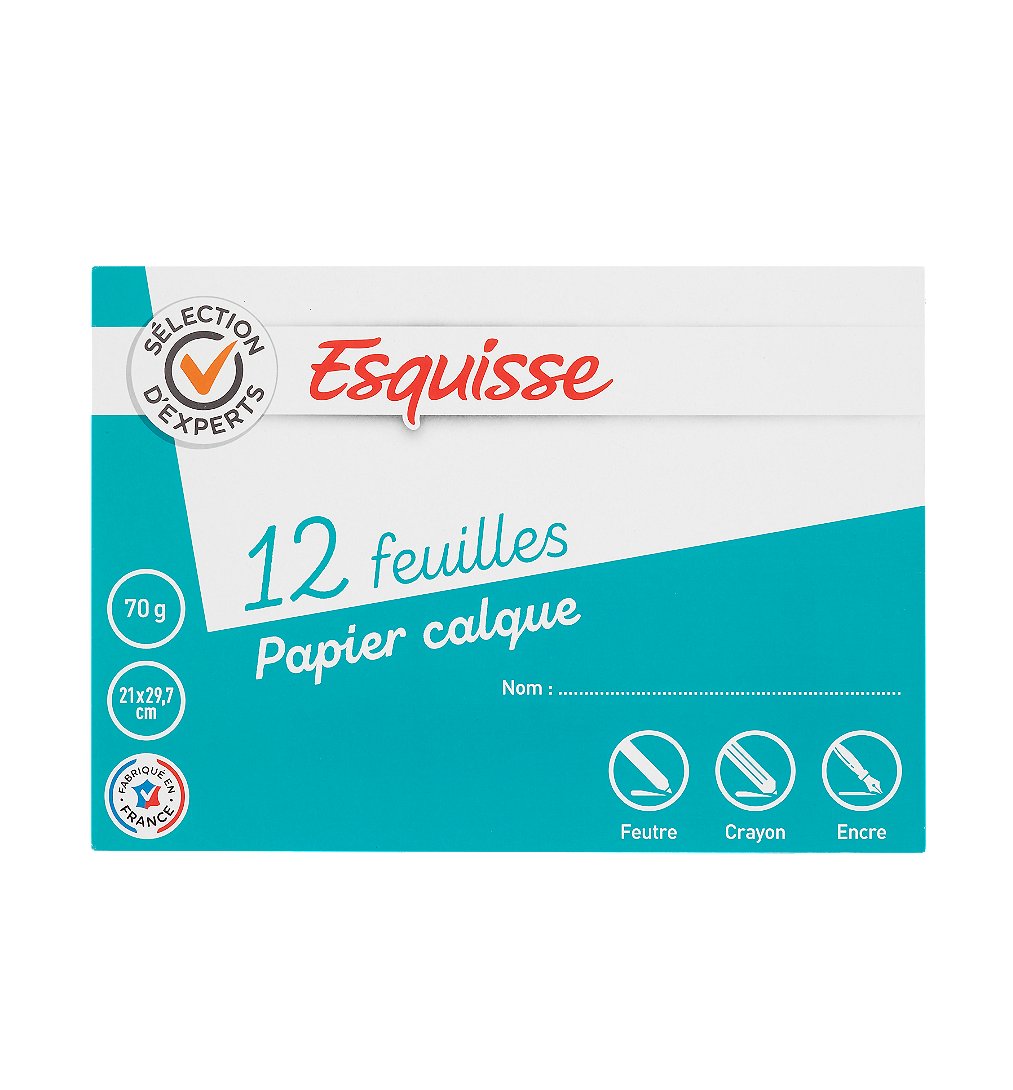 | Libellé | Lot de 12 feuilles papier calque 21x29,7cm - Sélection d'Experts - Esquisse |
