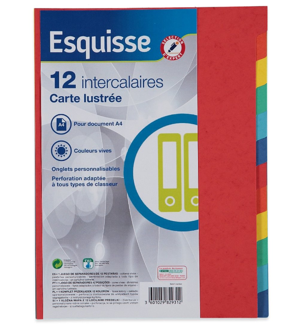| Libellé | Lot de 12 intercalaires carte 21x29,7cm - Sélection d'Experts - Esquisse |