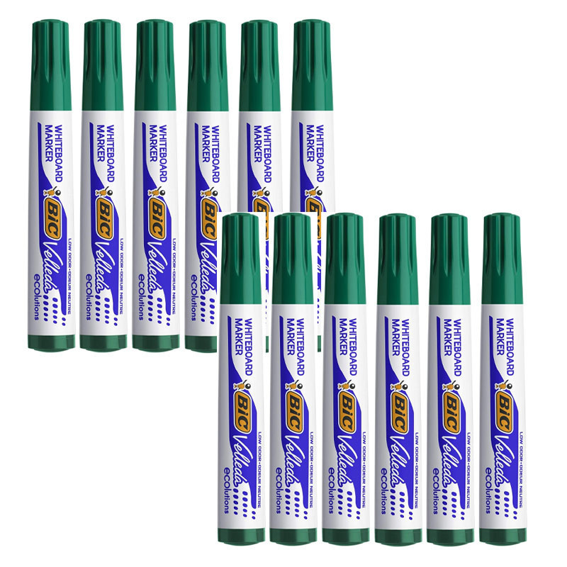 | Libellé | Lot de 12 marqueurs effaçable - Velleda 1701 - Vert - Bic - Pointe moyenne conique |