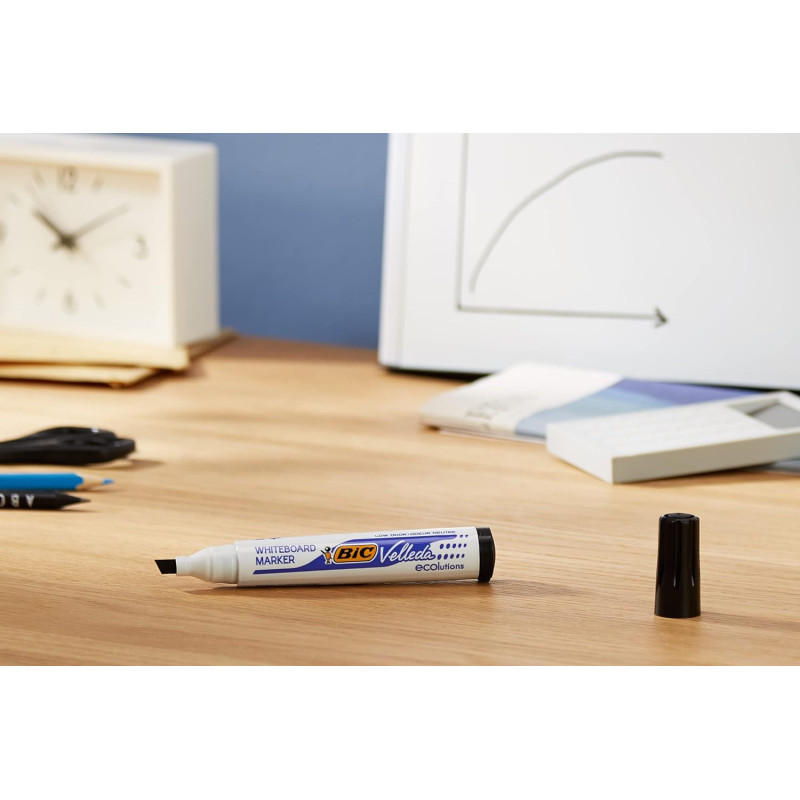 Le Lot de 12 marqueurs effaçables BIC Velleda 1751 représente le choix parfait pour les professionnels et les éducateurs exigeants. Conçu avec un souci d'éco-responsabilité, chaque marqueur est composé à 51% de matériaux recyclés, à l'exception du système d'encre, reflétant l'engagement de BIC envers l'environnement.