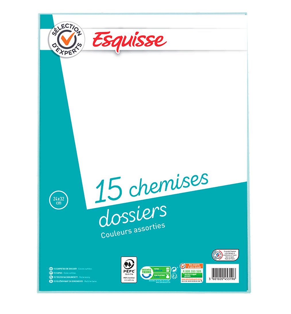 Lot de 15 chemises dossiers couleurs 180g carte - Sélection d'Experts - Esquisse