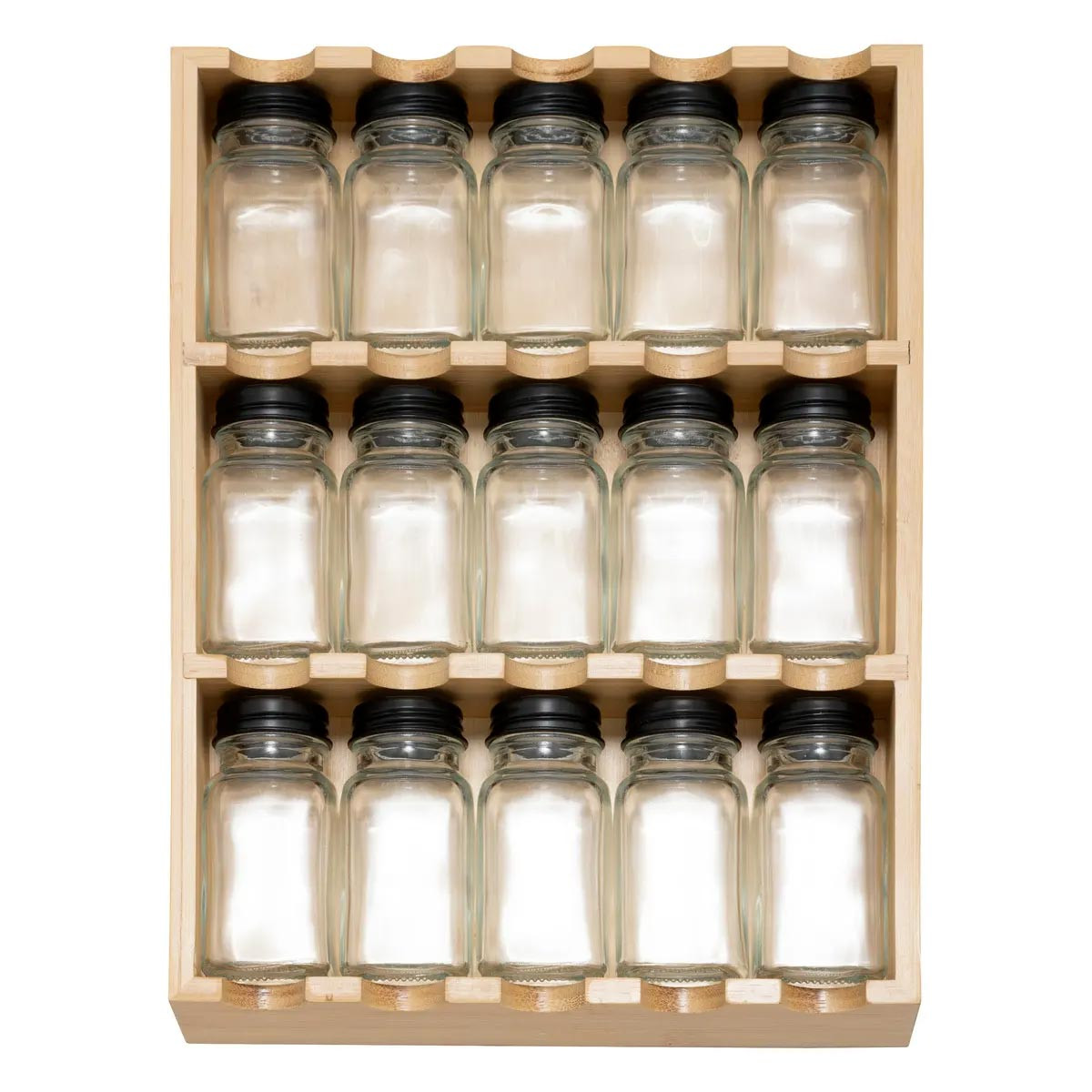 Lot de 15 Pots à Épices "Rack Tiroir" 31cm Naturel