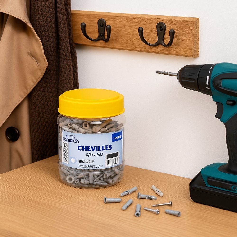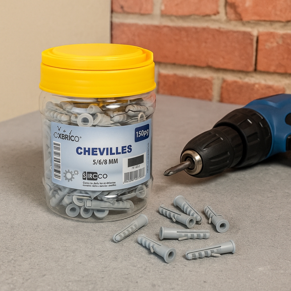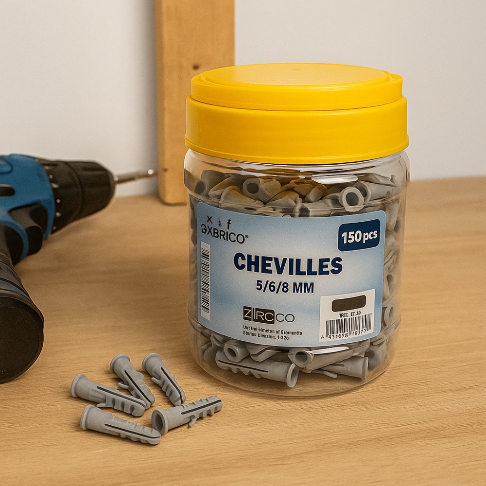 | Libellé | Lot de 150 Chevilles 5/6/8 mm avec Boîte de Rangement – Fixation Béton, Brique & Placo |