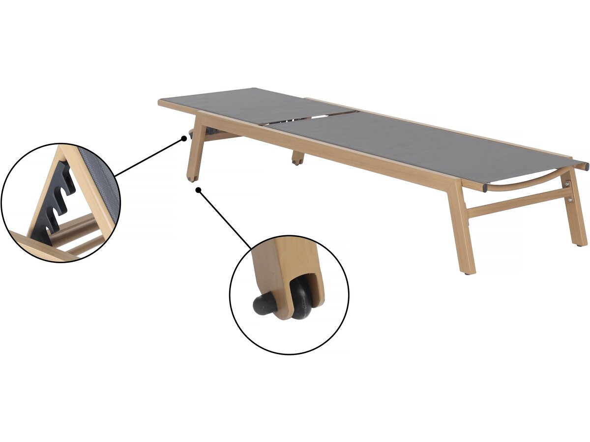 | Libellé | Lot de 2 bains de soleil en aluminium imitation bois "Elysia" - Gris |