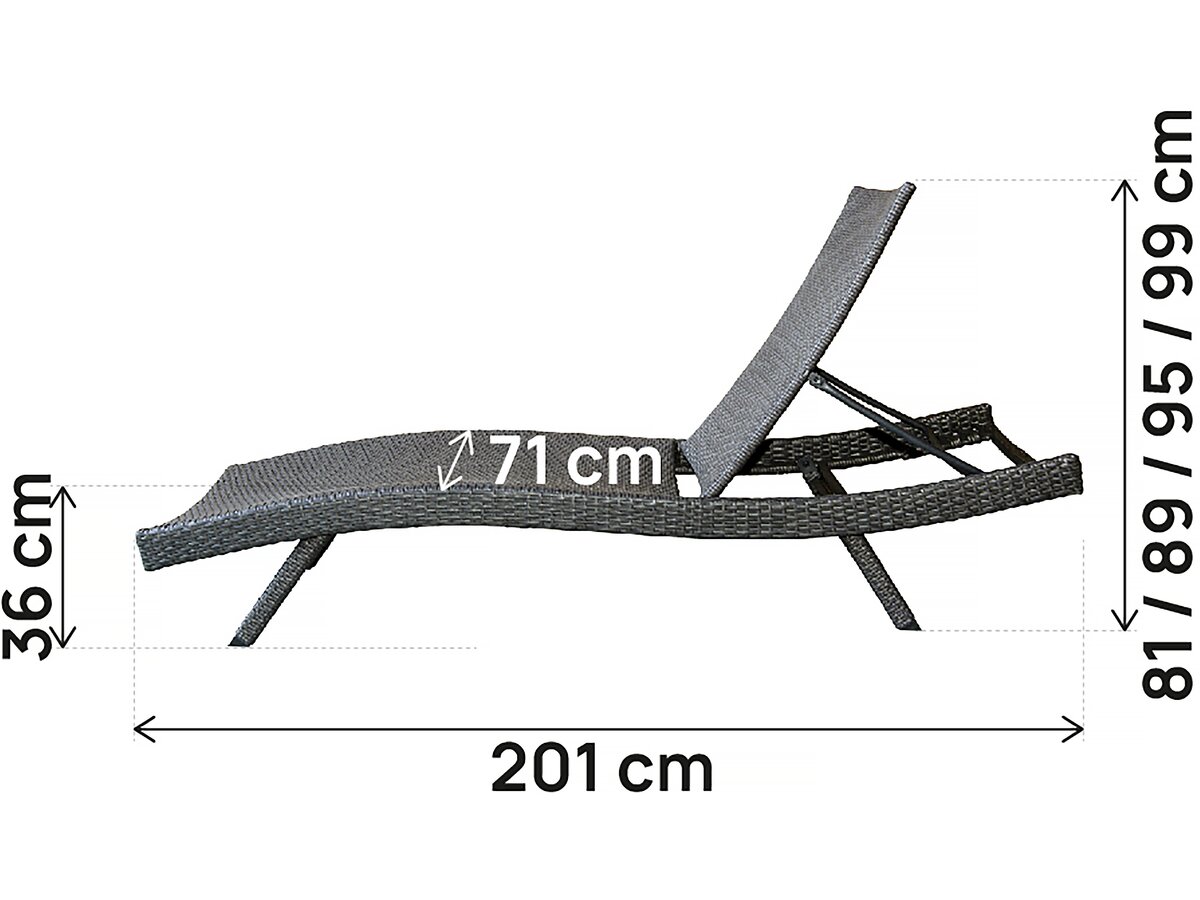 Le dossier ajustable permet de personnaliser l'inclinaison pour un confort optimal selon vos préférences pouvant aller de 81 à 99 cm. Le tissu résistant aux intempéries est facile à entretenir, ce qui garantit que vos transats conservent leur esthétique et leur confort au fil du temps.