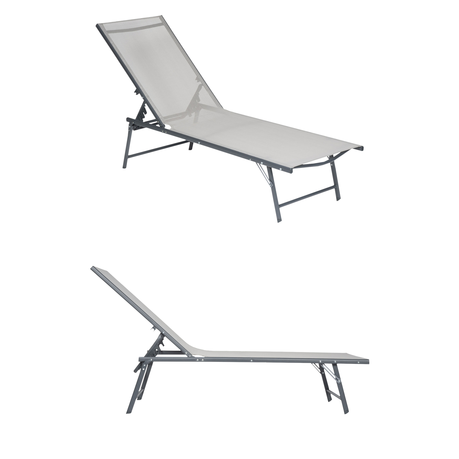 | Libellé | Lot de 2 bains de soleil pliants SICILIA en textilène gris - structure anthracite |