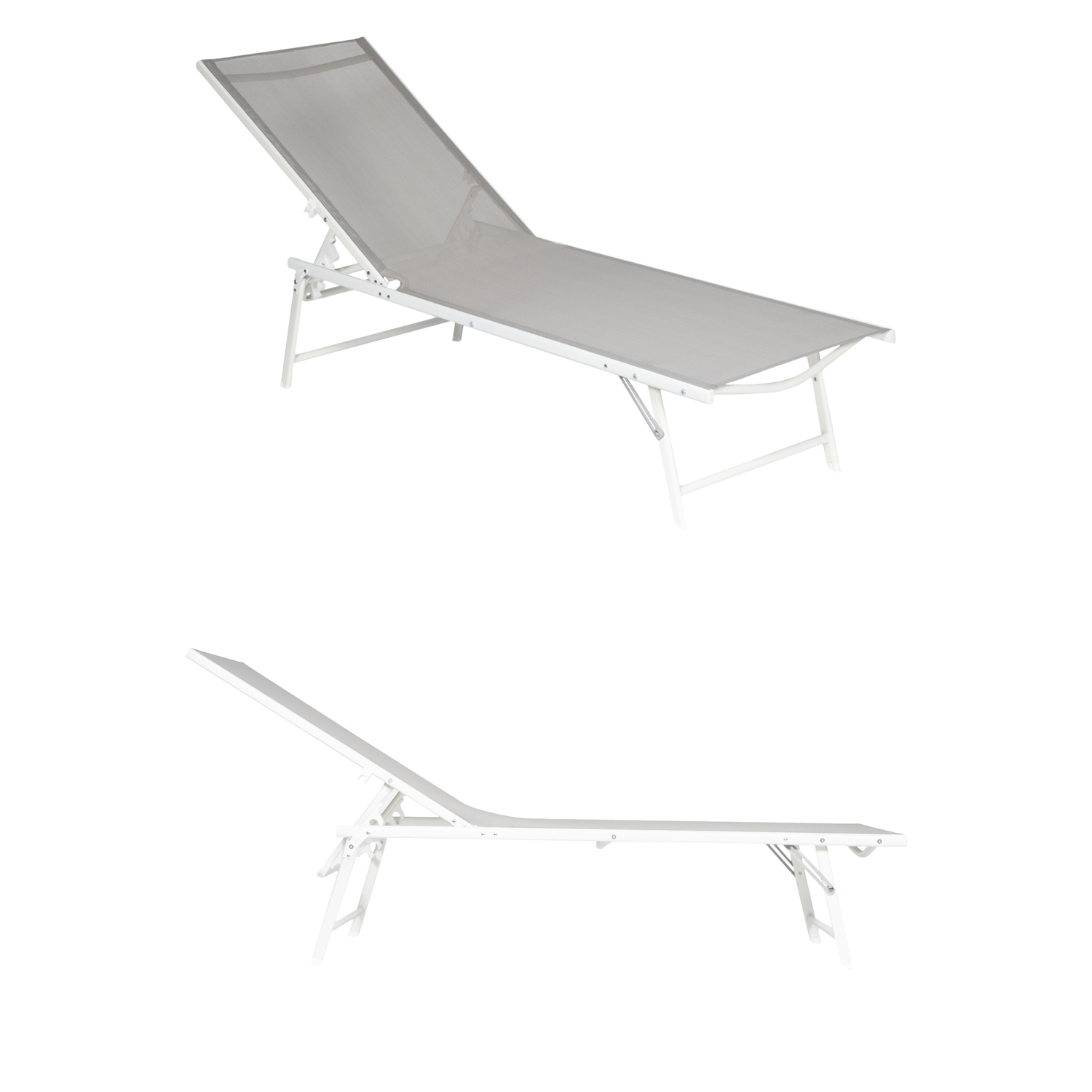 Lot de 2 bains de soleil pliants SICILIA en textilène gris - structure blanche