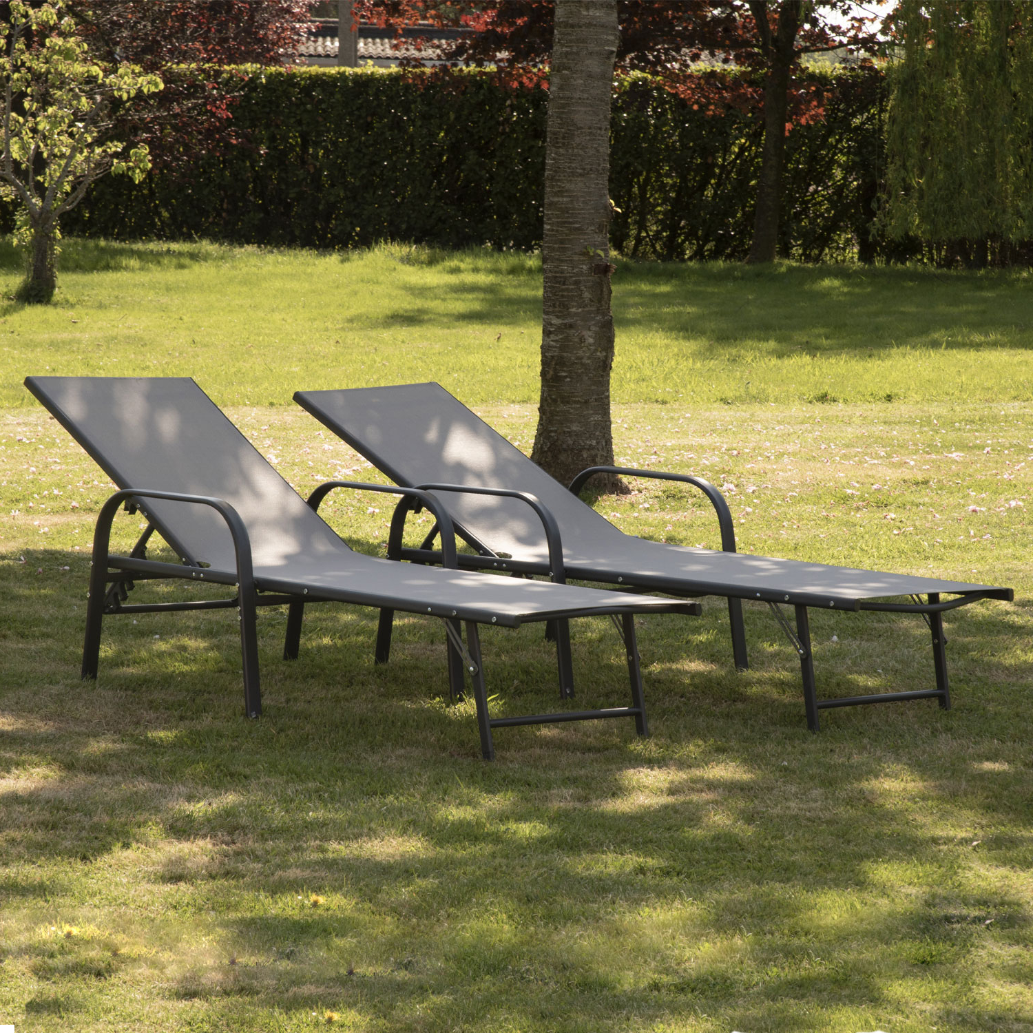 | Libellé | Lot de 2 bains de soleil SARDINIA en textilène gris - structure anthracite |