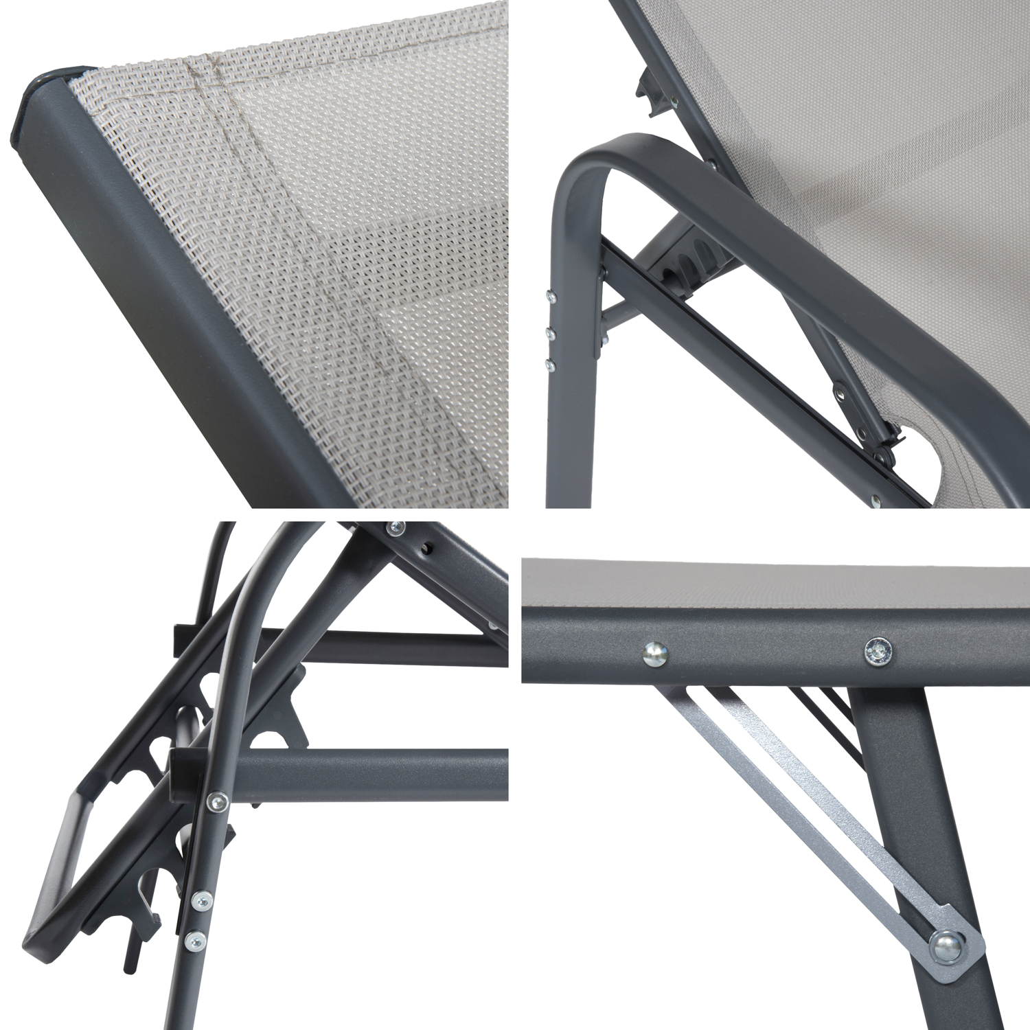 Ces bains de soleil vous offriront tout le confort dont vous rêvez grâce à leur dossier inclinable sur plusieurs niveaux et leur assise en textilène. En effet, cette matière souple épouse parfaitement les courbes du corps et laisse respirer la peau grâce aux petites alvéoles qui la composent.
