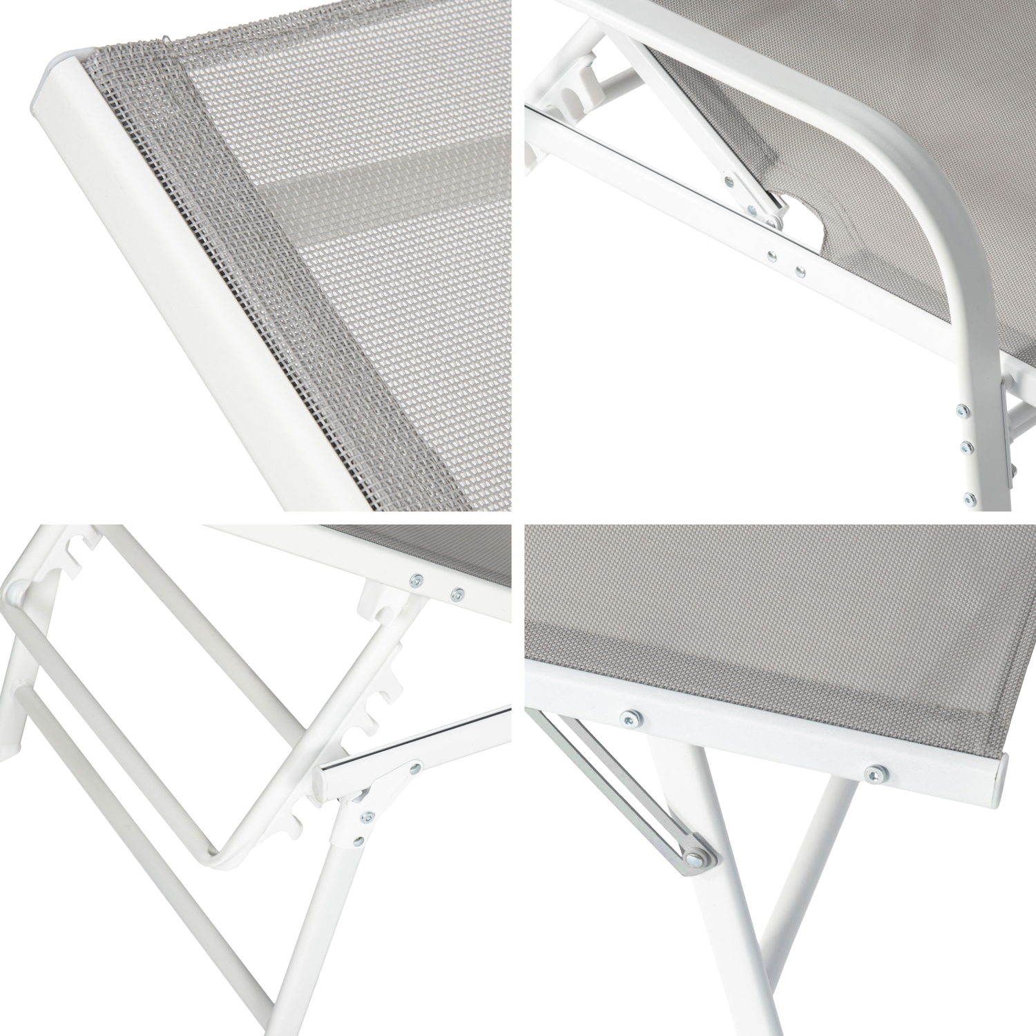 Ces bains de soleil vous offriront tout le confort dont vous rêvez grâce à leur dossier inclinable sur plusieurs niveaux et leur assise en textilène. En effet, cette matière souple épouse parfaitement les courbes du corps et laisse respirer la peau grâce aux petites alvéoles qui la composent.
