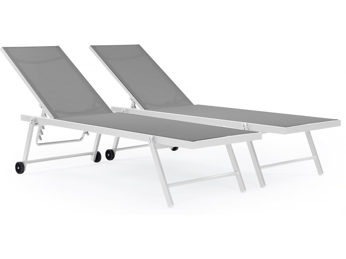 Lot de 2 bains de soleil textilène aluminium "Jolia" - Gris / Blanc