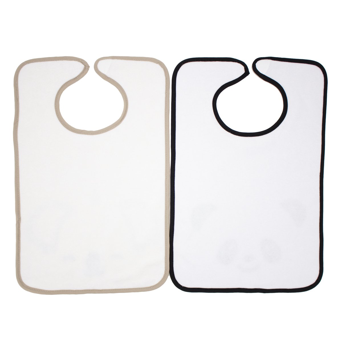 Lot de 2 bavoirs deuxième âge avec fermeture à scratch doux.