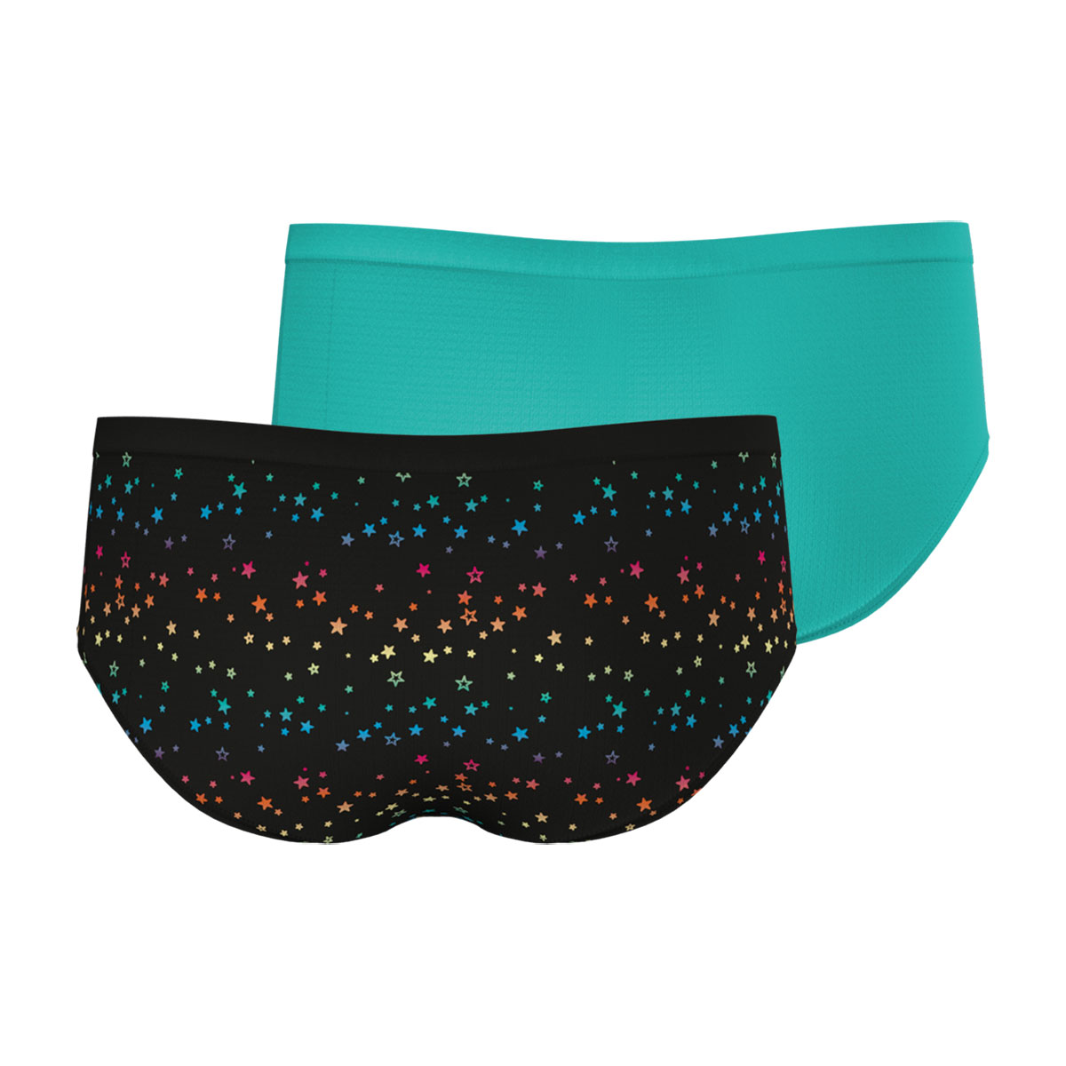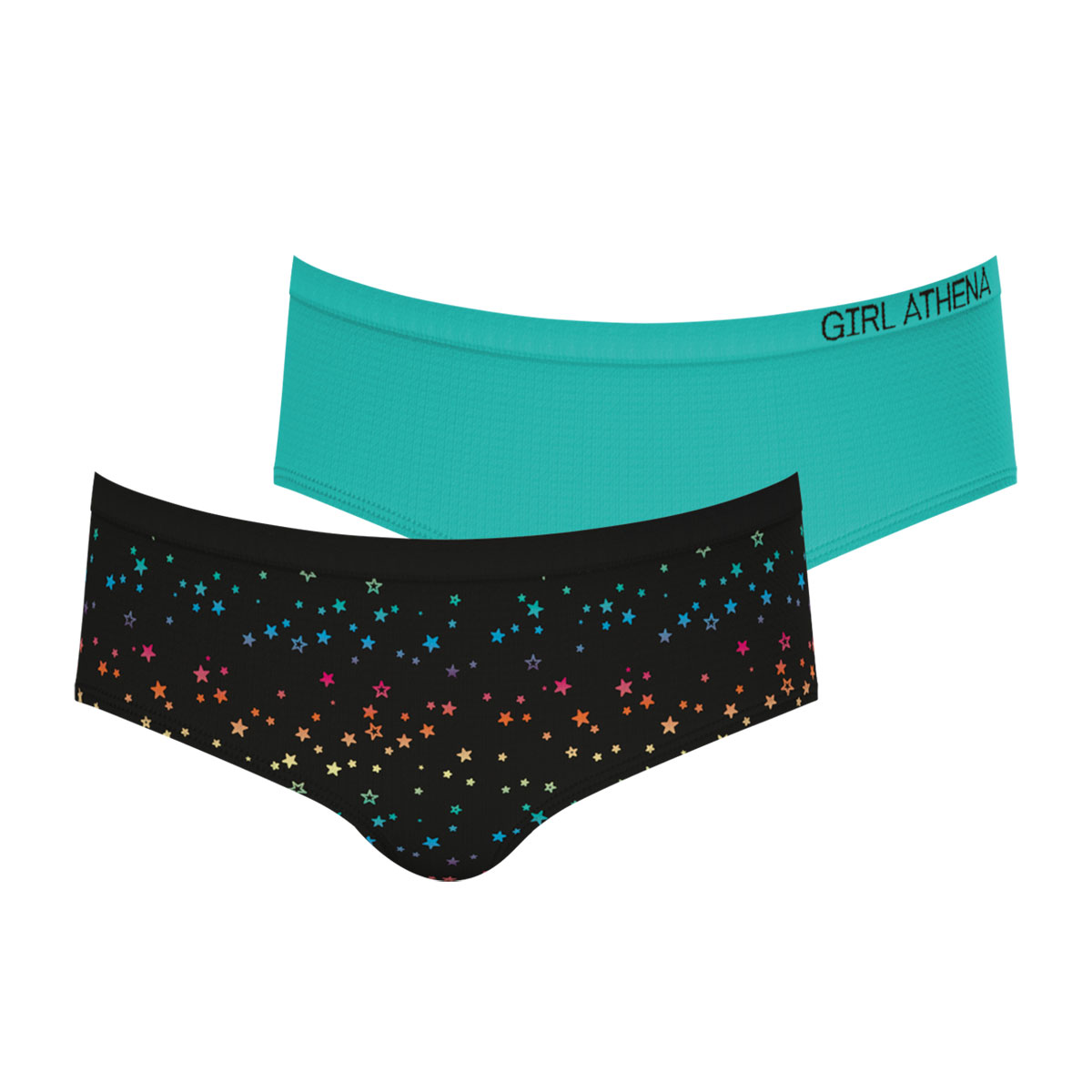 Caracté\;ristiques de ce lot de 2 boxers noir imprimé\; é\;toiles multicolore et uni menthe \;GIRL by Athena