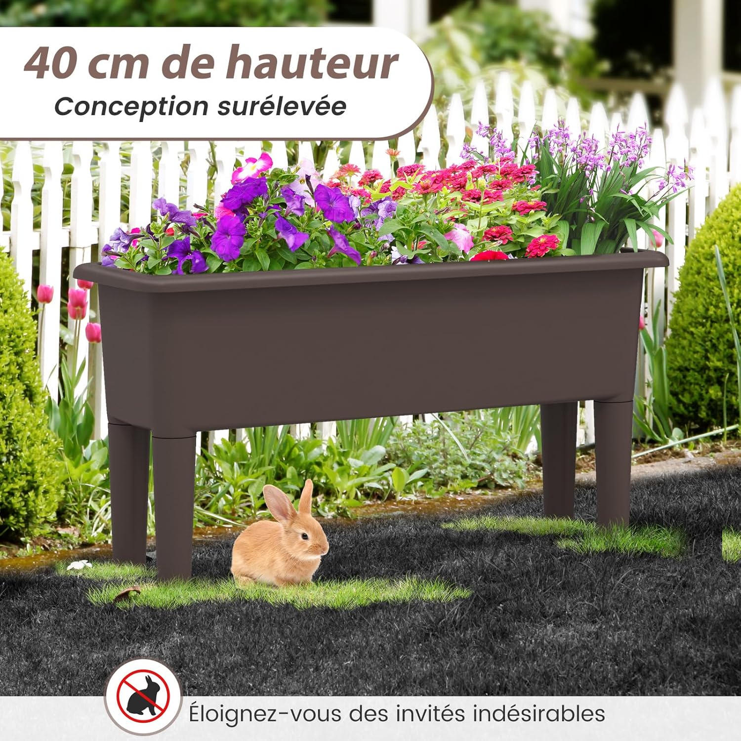 - Design Surélevé : Équipé de 4 pieds détachables, ce bac de plantation surélevé est à 40 cm du sol, protégeant ainsi vos plantes des rongeurs ou d'autres invités indésirables. De plus, ce bac de plantation polyvalent est idéale pour le jardin, la cour arrière, le balcon, le patio.