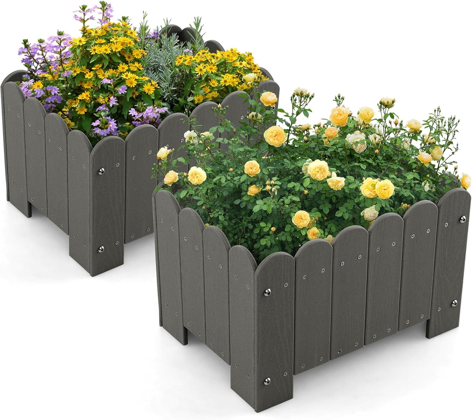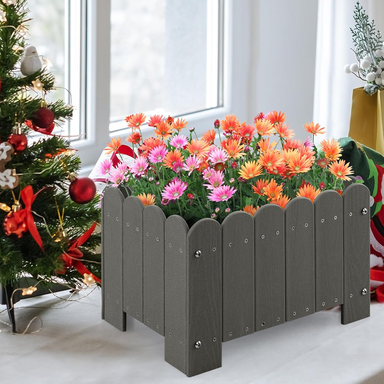 - Cadre HDPE Durable : Fabriqué en matériau HDPE résistant aux intempéries, le cadre est résistant aux fissures, à l'usure et à la décoloration pour garantir la croissance de vos plantes. Conçu pour résister aux éléments, ce cadre robuste garantit à vos fleurs et herbes préférées un endroit sécurisé et élégant toute l'année.