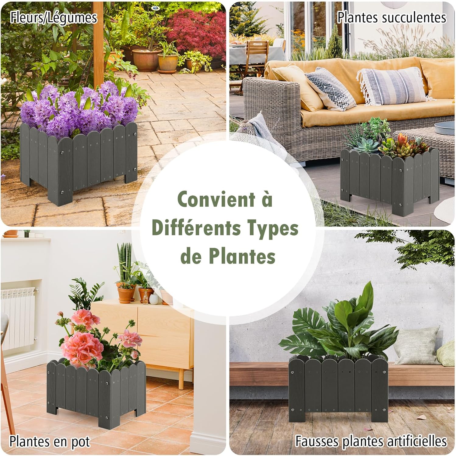 | Libellé | Lot de 2 carrée potager en hdpe, jardinières extérieurs imtempérables,trous de drainage pour légumes gris |