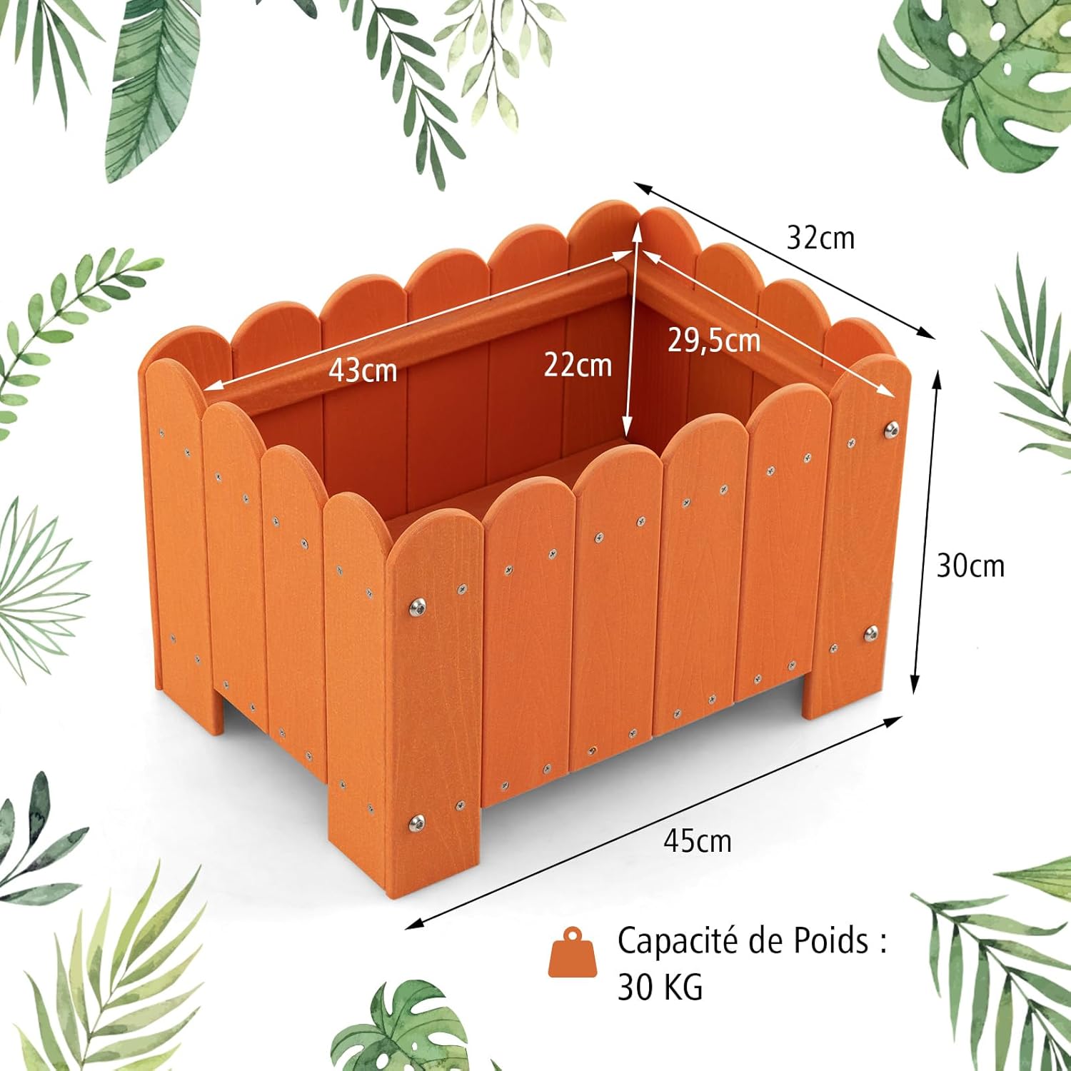- Cadre HDPE Durable : Fabriqué en matériau HDPE résistant aux intempéries, le cadre est résistant aux fissures, à l'usure et à la décoloration pour garantir la croissance de vos plantes. Conçu pour résister aux éléments, ce cadre robuste garantit à vos fleurs et herbes préférées un endroit sécurisé et élégant toute l'année.