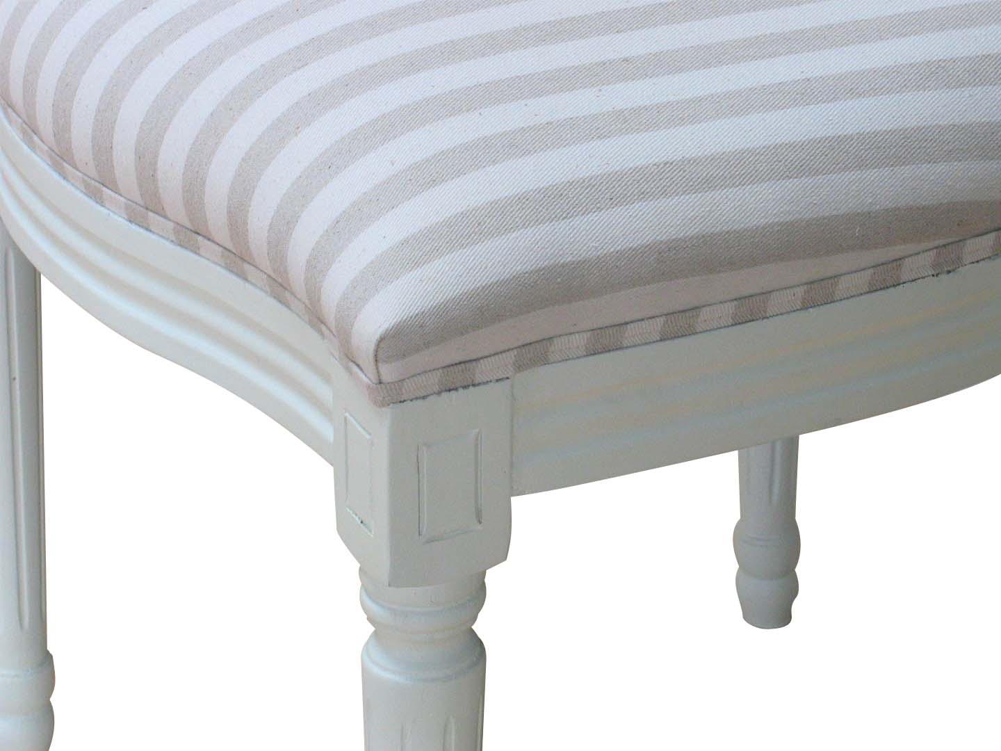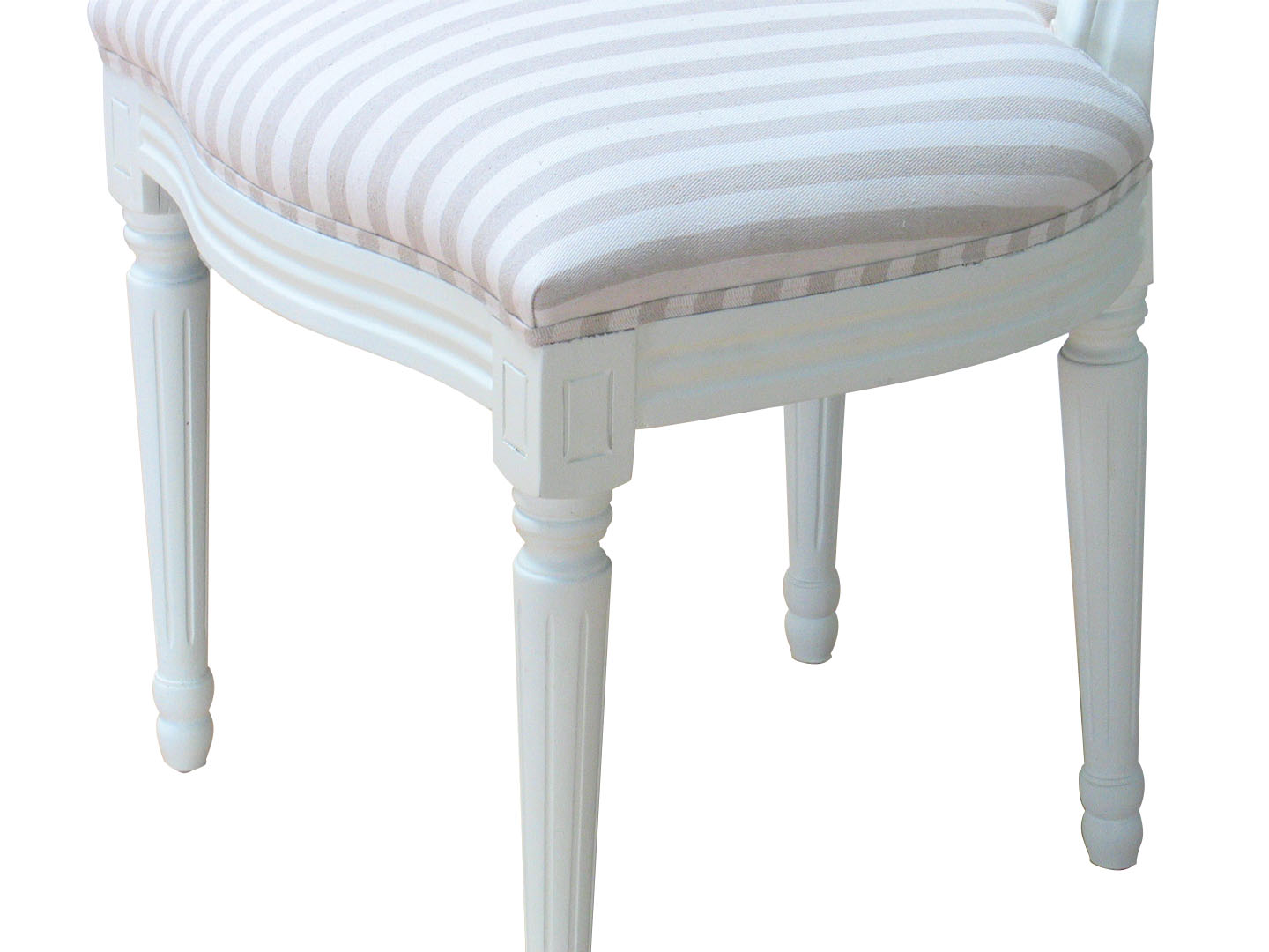 La chaise de salle à manger Rococo/Amaretta en blanc antique avec tissu rayé beige est une chaise de table à manger de couleur blanche qui apporte à la fois style et fonctionnalité à votre maison. Belle chaise classique de style romantique en blanc antique avec tissu rayé beige. Vous pouvez également obtenir la chaise dans d'autres couleurs avec et sans accoudoirs. Chaque chaise est fabriquée à la main, ce qui donne à chaque chaise un look unique. REMARQUE : Les chaises sont emballées par carton de 2 et 2, elles doivent donc être commandées par paire. Meubles solides de qualité avec âme. Design élégant avec patine antique. Un meuble de qualité, élégant, charmant et solide. Ce produit a été créé avec un souci du détail, qui garantit à la fois un attrait esthétique et une grande durabilité. Il est conçu dans un souci à la fois de fonctionnalité et de style, ce qui en fait le choix parfait pour n’importe quelle pièce de votre maison. Les matériaux utilisés sont de haute qualité, ce qui confère au produit une longue durée de vie et lui permet de résister à une utilisation quotidienne. Que ce soit pour le rangement ou comme ajout décoratif, ce produit rehaussera votre décor et apportera plus de confort et d'élégance à votre maison.