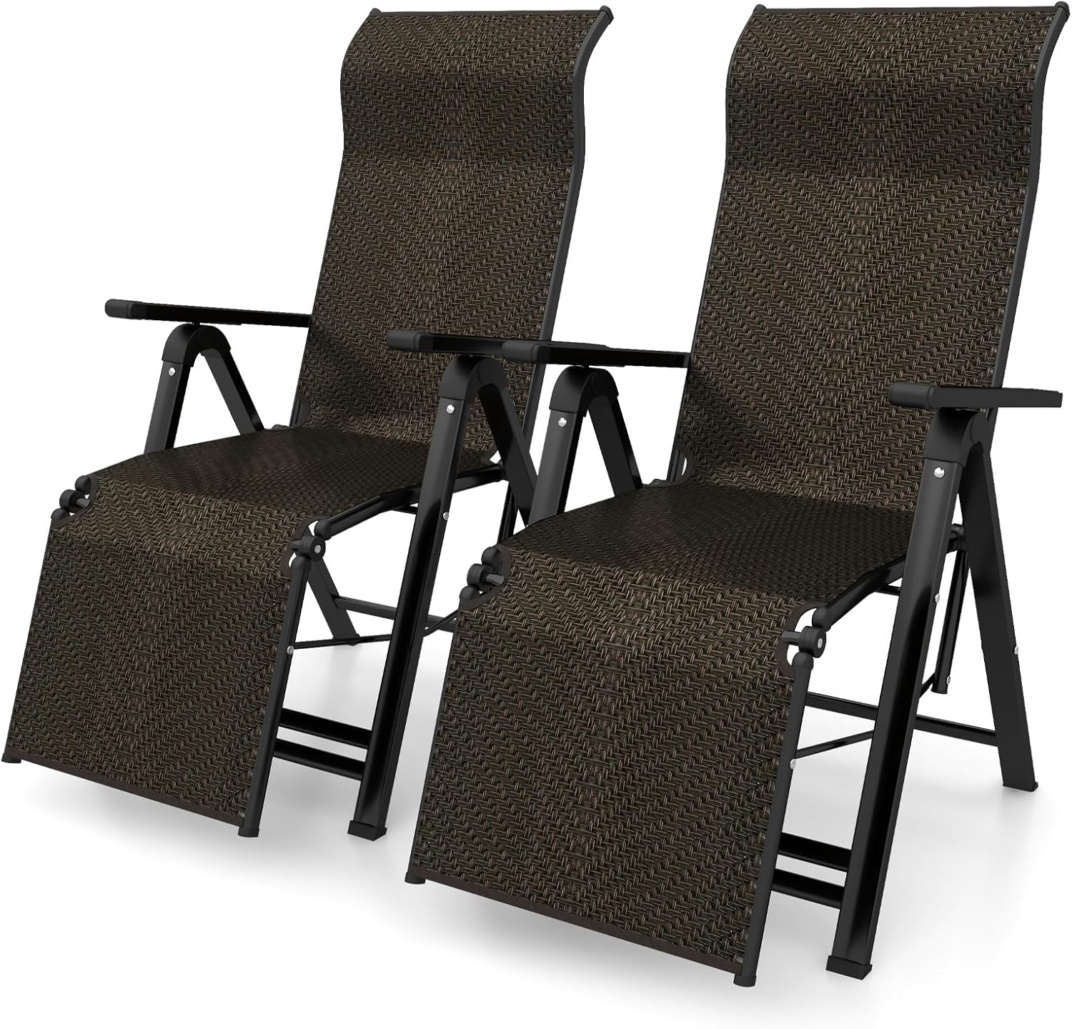 Lot de 2 chaise longue extérieur pliante en rotin PE pour bain de soleil, dossier et repose-pieds, brun