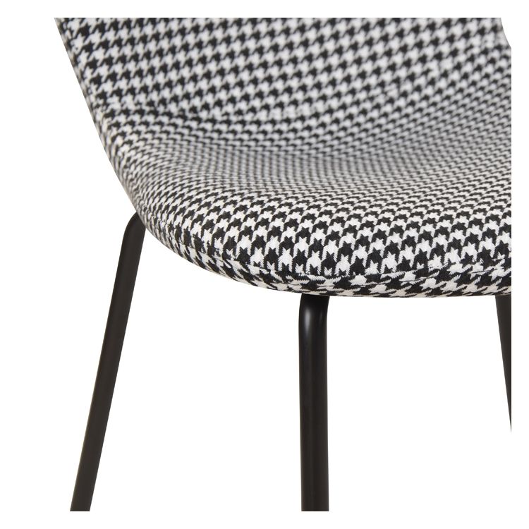 Dès le premier regard, vous serez sous le charme du mouvement en noir et blanc de notre chaise Koko en tissu à motifs (lot de 2). Le pied-de-poule est au top des tendances pour son efficacité visuelle, son côté dynamique mais aussi sa sobriété. Associé à des pieds inclinés en métal noir, l’effet est un vrai sans faute.