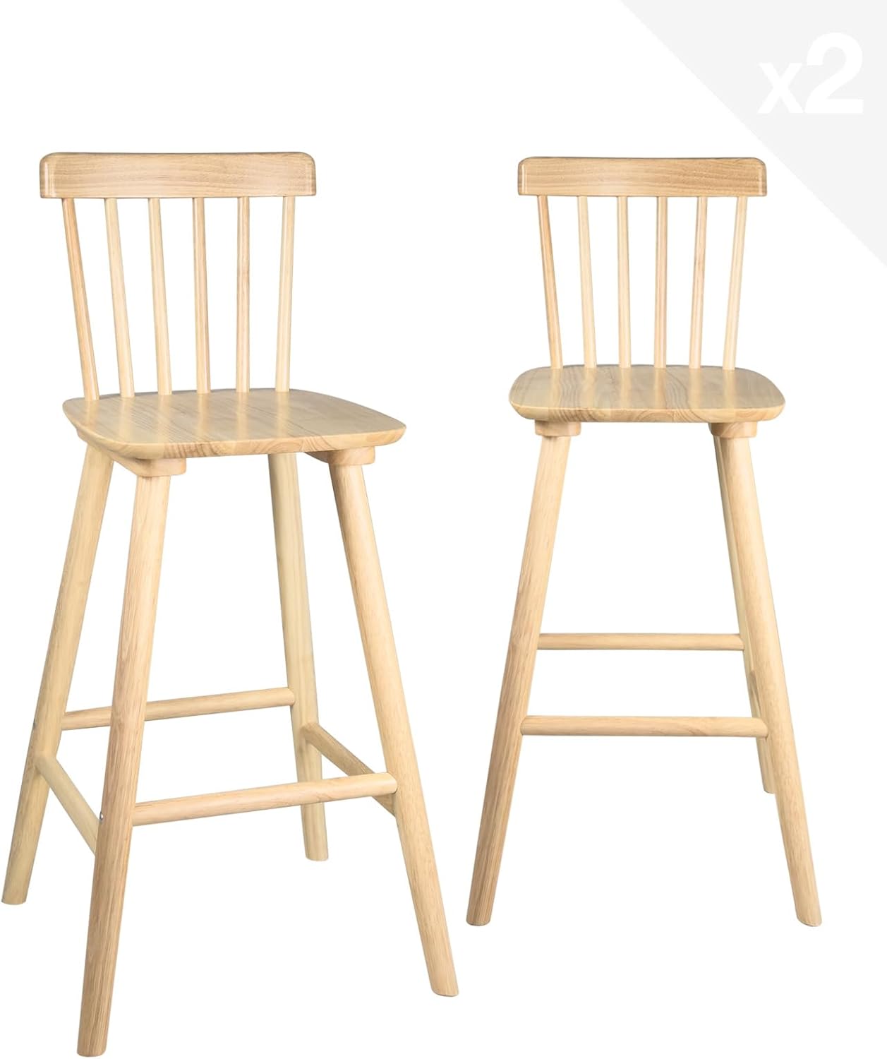 | Libellé | Lot de 2 chaises bar rétro vintage bois massif dossier à barreaux hauteur 66cm ATIA (Bois clair) |