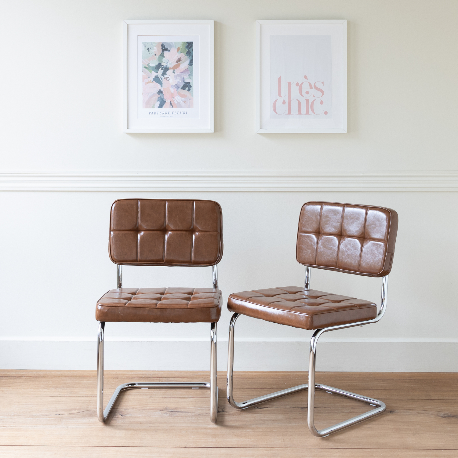 | Libellé | Lot de 2 chaises cantilever en simili marron MARIA |