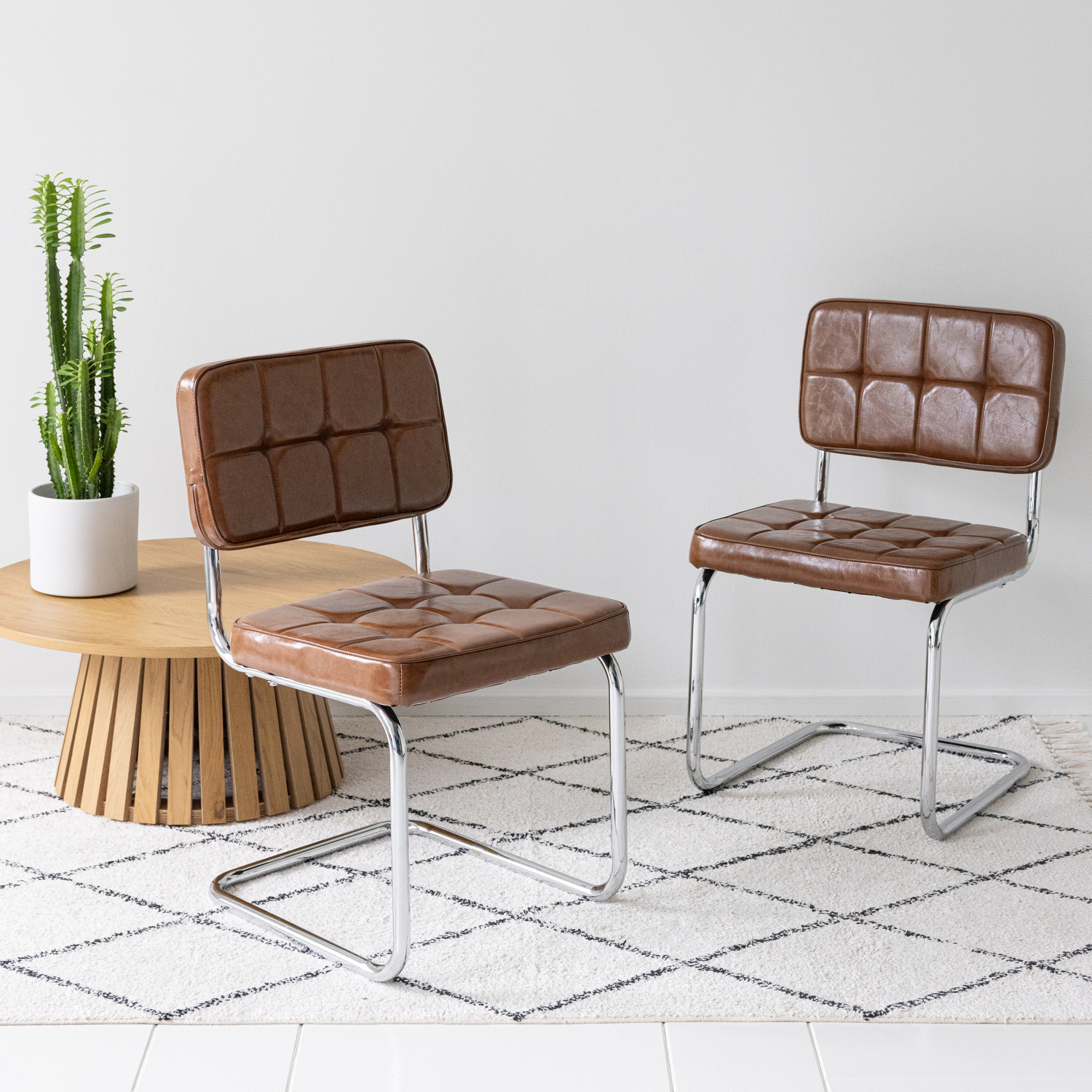 Lot de 2 chaises cantilever en simili marron MARIA