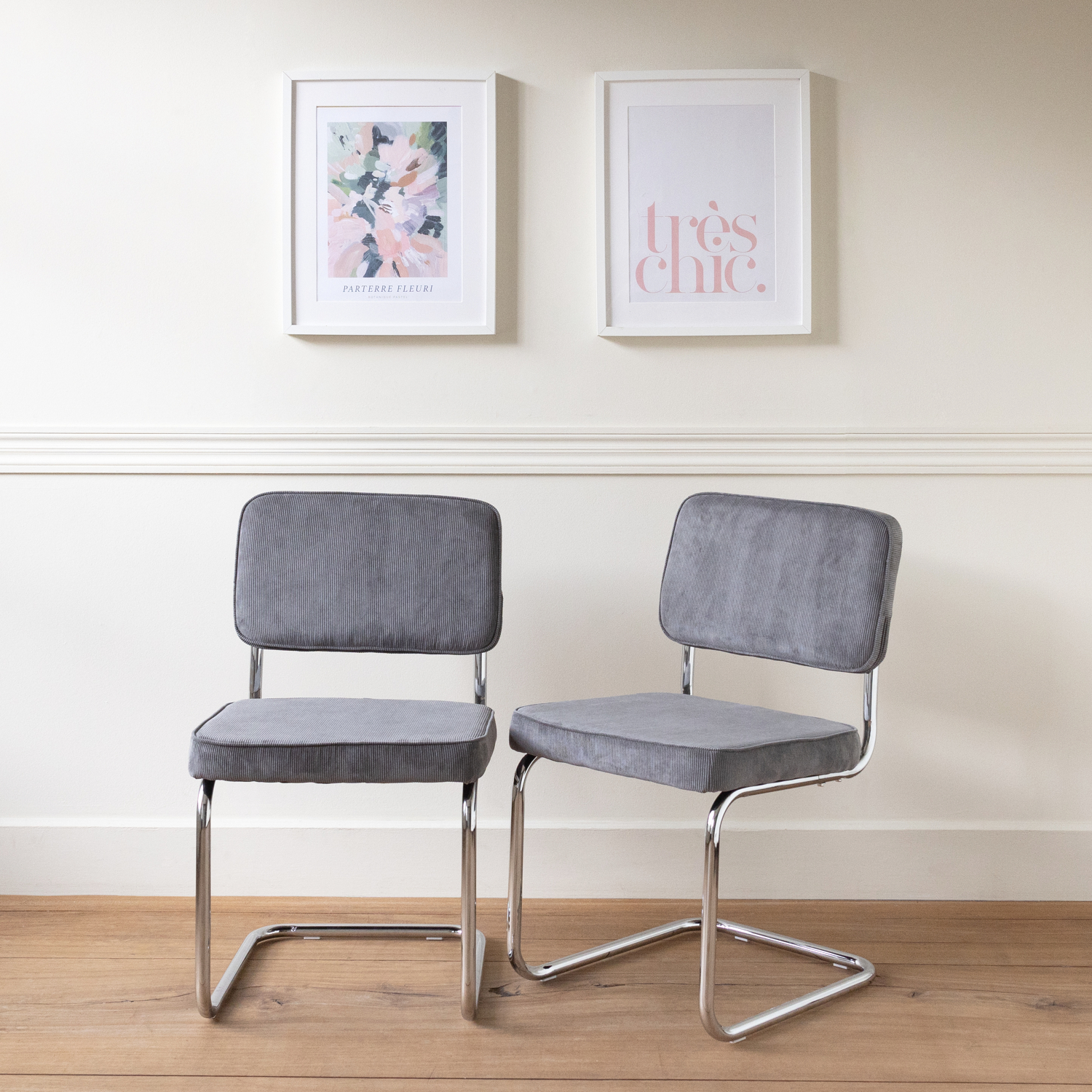Lot de 2 chaises cantilever en velours côtelé gris MARIA