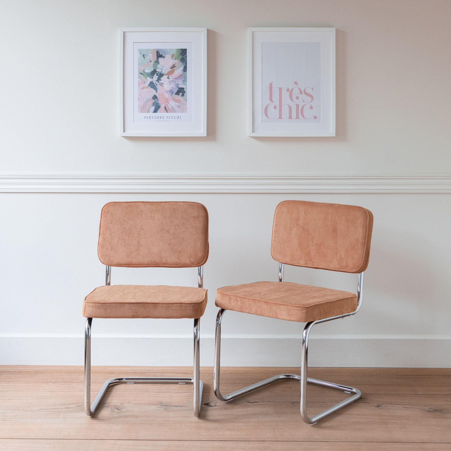 Lot de 2 chaises cantilever en velours côtelé terracotta MARIA