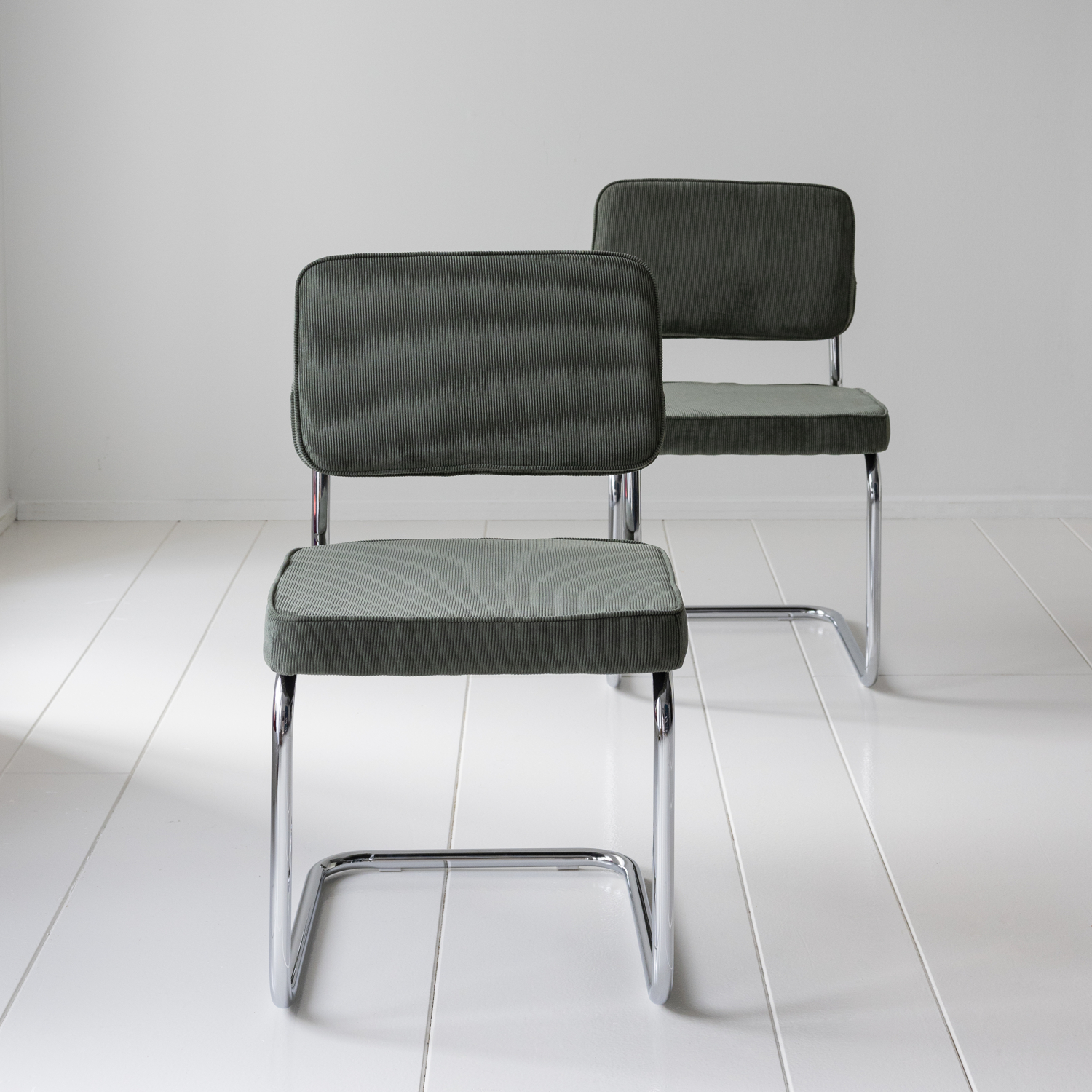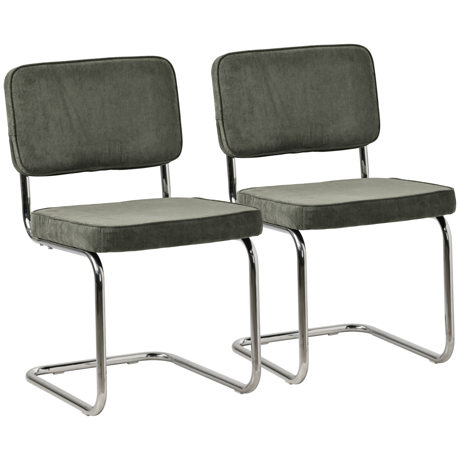 Lot de 2 chaises cantilever en velours côtelé vert kaki MARIA