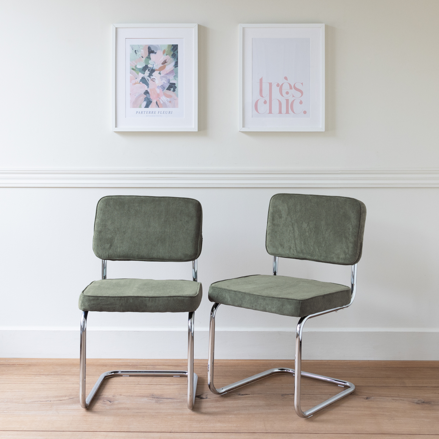 | Libellé | Lot de 2 chaises cantilever en velours côtelé vert kaki MARIA |