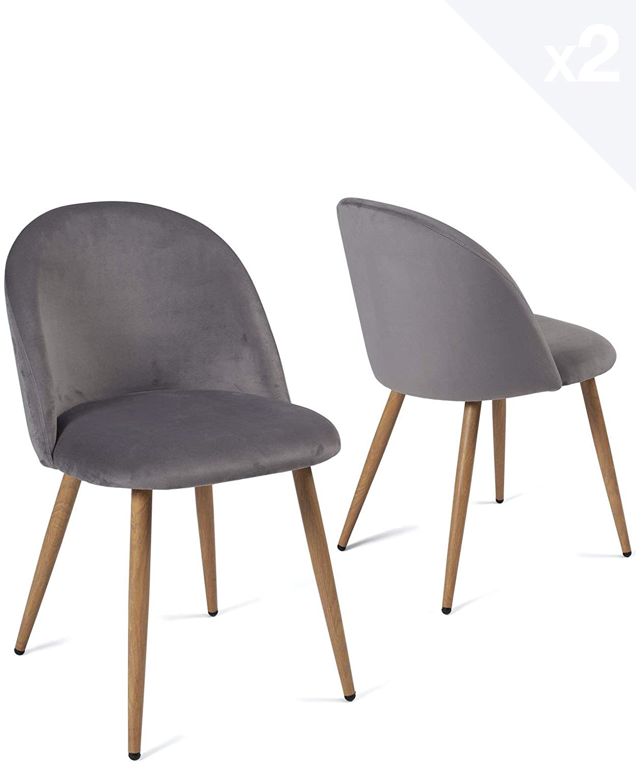 Lot de 2 chaises cocktail velours GIZA (gris foncé)